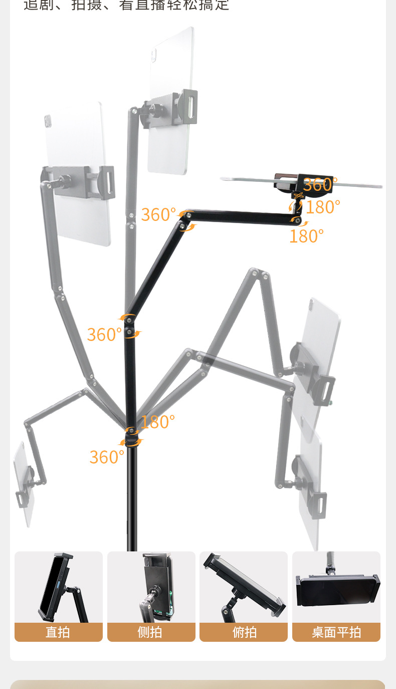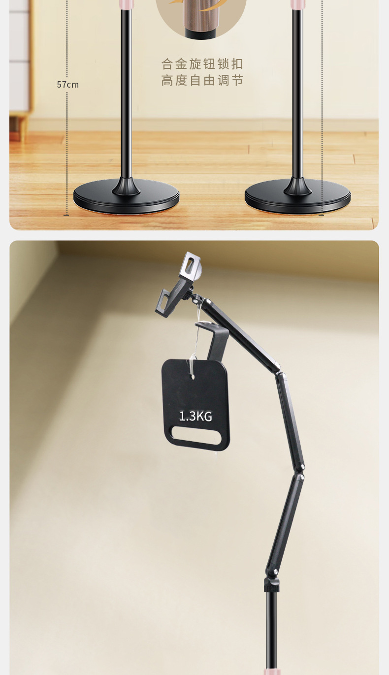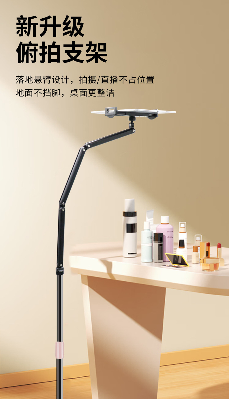 휴대 전화 플로어 스탠드 태블릿 텔레스코픽 접이식 캔틸레버 라이브 방송 스탠드 침대 옆 드라마 게으른 사람 리프팅 스탠드스토어 가기