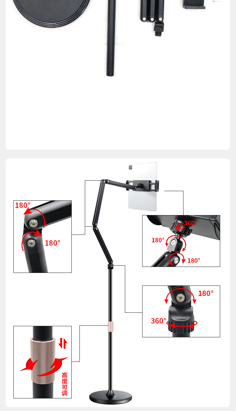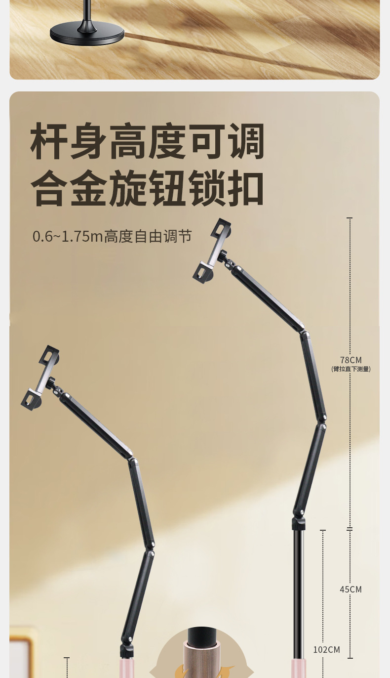 휴대 전화 플로어 스탠드 태블릿 텔레스코픽 접이식 캔틸레버 라이브 방송 스탠드 침대 옆 드라마 게으른 사람 리프팅 스탠드