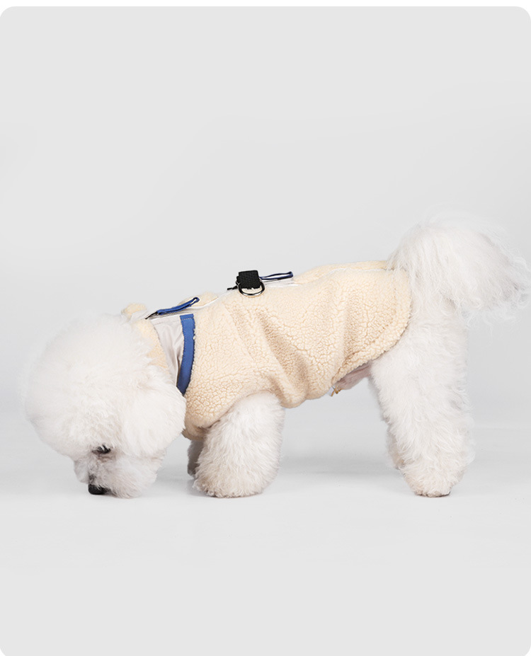 새로운 개 옷, 폴라 플리스 재킷, 견인 가능, 따뜻하고 구름 같은 느낌, 두꺼운 강아지 애완 동물 면 코트, 한국 겨울스토어 가기