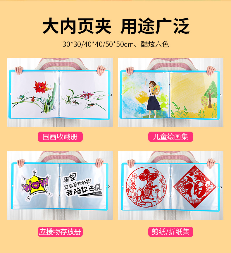 Huajie Square 중국어 회화 컬렉션 앨범 40x40 앨범 보관 학생 어린이 미술 작품 보관 앨범 휴대용 3스토어 가기
