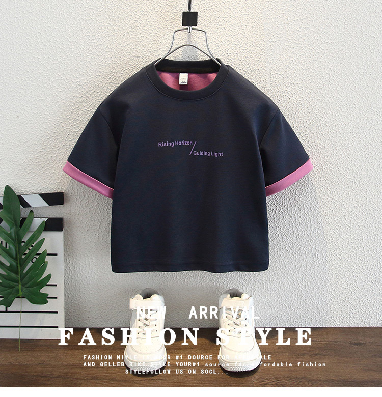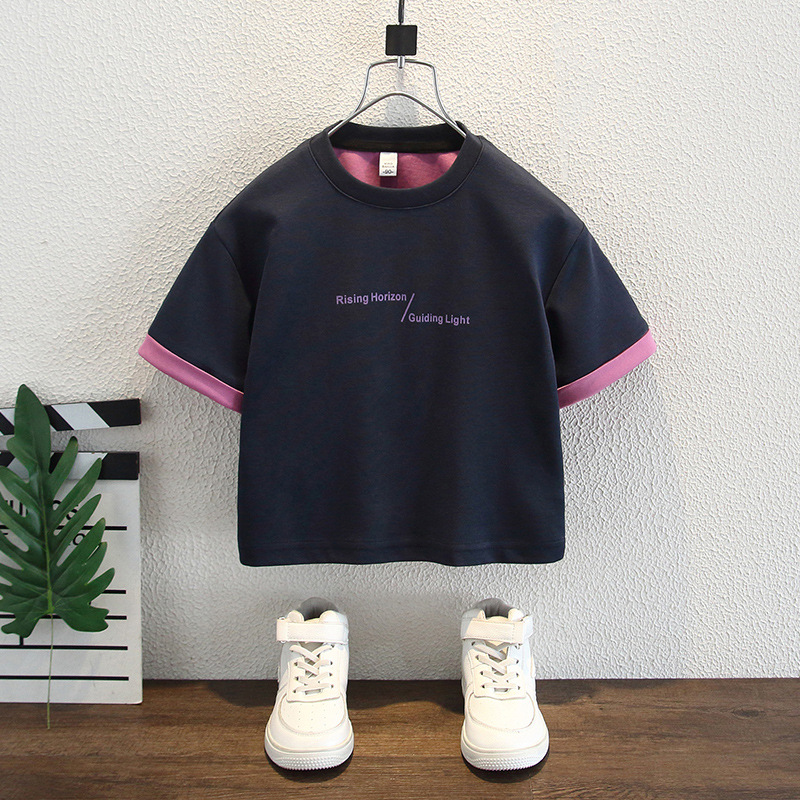 8176 어린이 반팔 티셔츠 여름 유행 2025 새로운 스타일의 어린 소년 잘 생긴 여름 옷 어린 소년의 잘 생긴상의스토어 가기