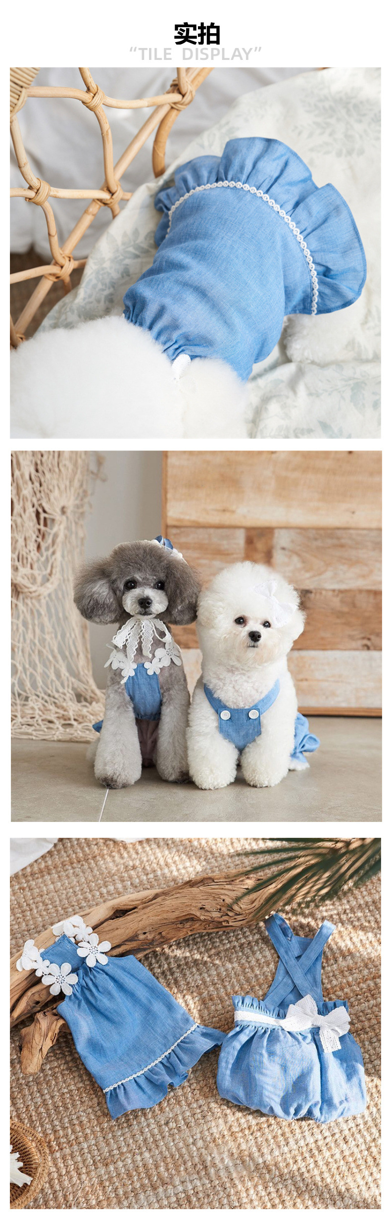2025 여름 새 개 클래식 데님 고양이 원피스 테디 Bixiong 애완 동물 개 옷
