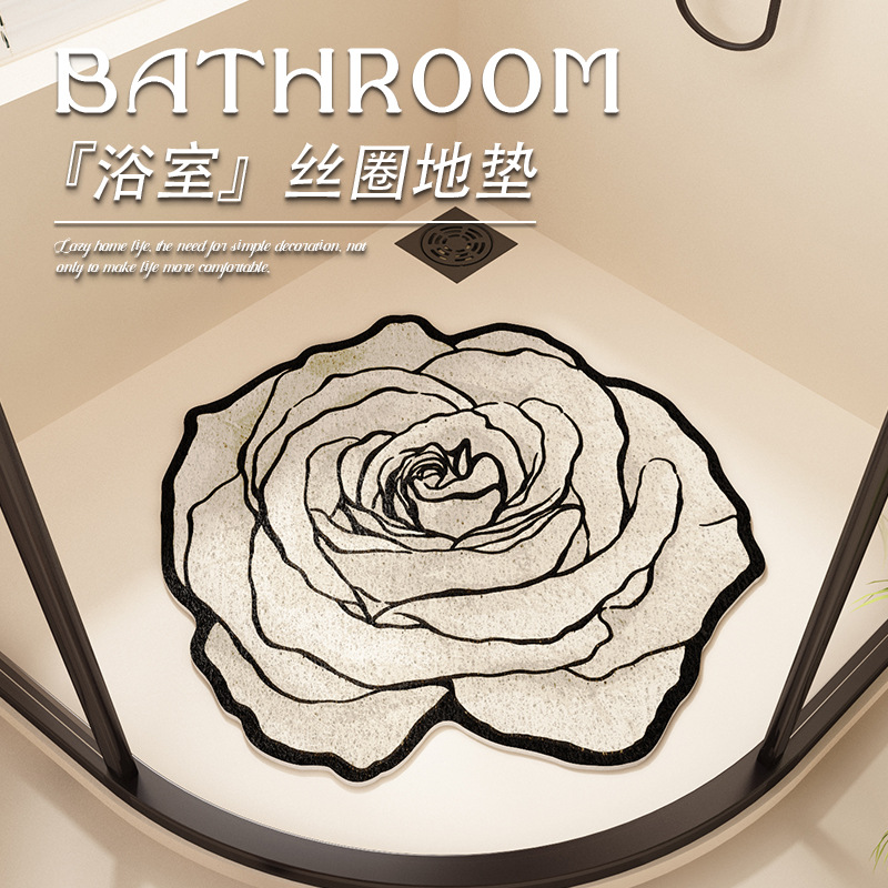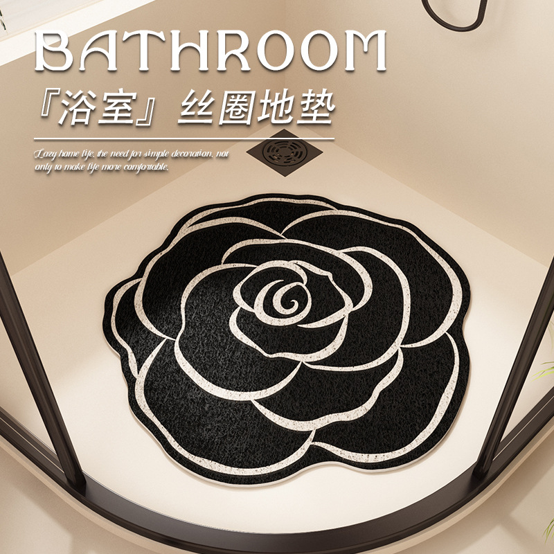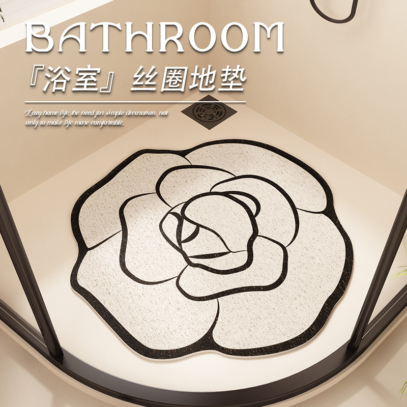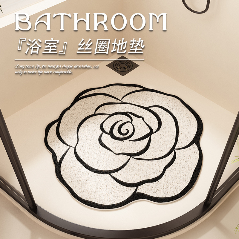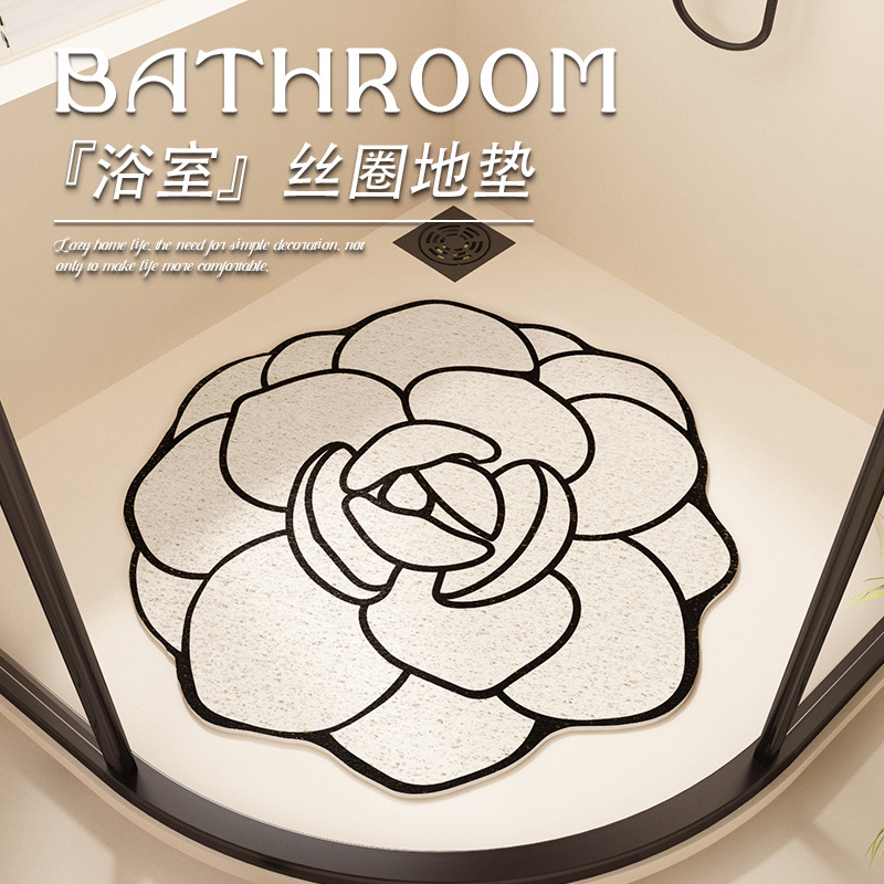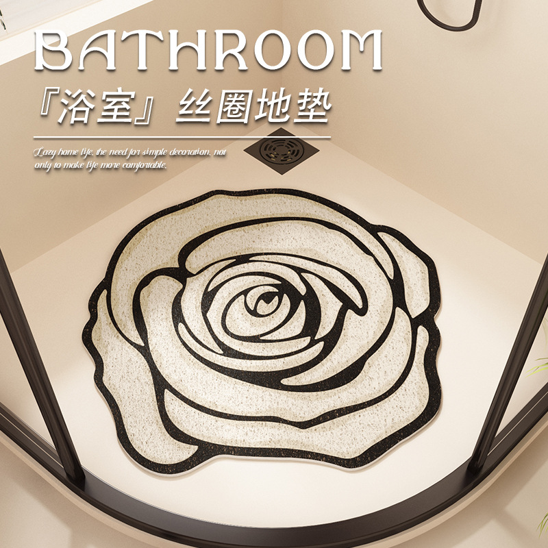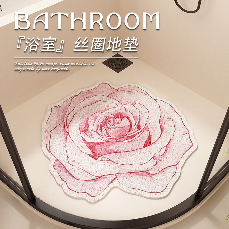 프렌치 로즈 욕실 바닥 매트, 먼지 제거 및 내마모성 와이어 링 바닥 매트, 가정용 간편한 관리 샤워 미끄럼 방지 발 매트스토어 가기