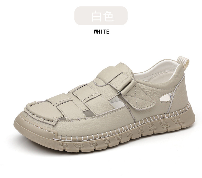 남성용 아웃도어 비치 샌들, 1층 소가죽, 손바느질, 펀칭 홀 슈즈, 남성용 바오터우 캐주얼 드라이빙 슈즈