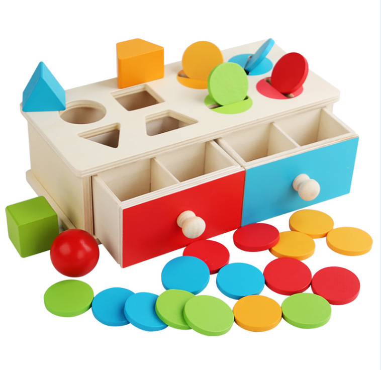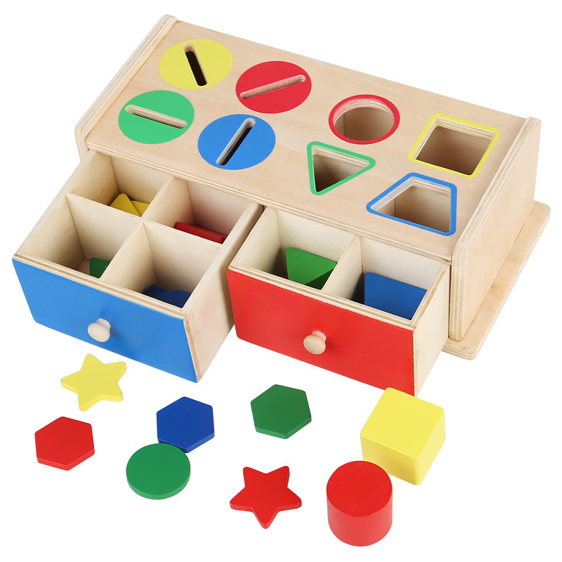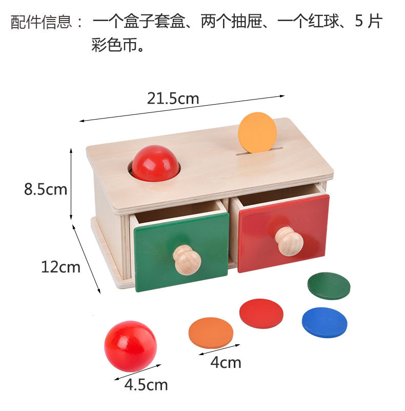产品名称:ZLA-黄蓝双抽屉蒙氏分类投币盒 0.7kg