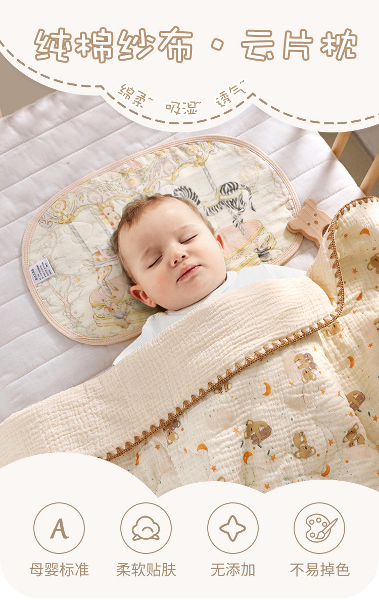 아기 구름 베개 신생아 구토 방지 클래스 A 순면 거즈 베개 커버 땀 흡수 통기성 베개 쿠션스토어 가기