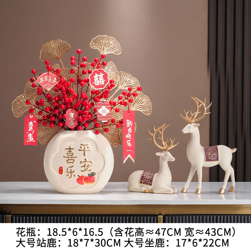 • 평화와 기쁨의 꽃병 + 큰 사슴 한 쌍