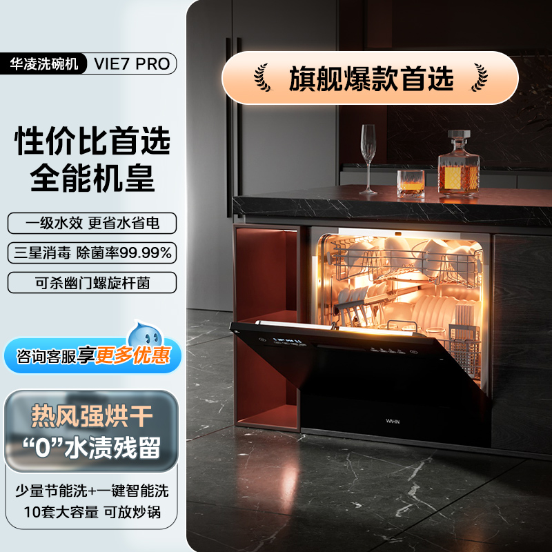 Hualing 식기 세척기 Vie7Pro 완전 자동 가정용 소형 데스크탑 임베디드 소독 및 살균 대용량 10 세트스토어 가기