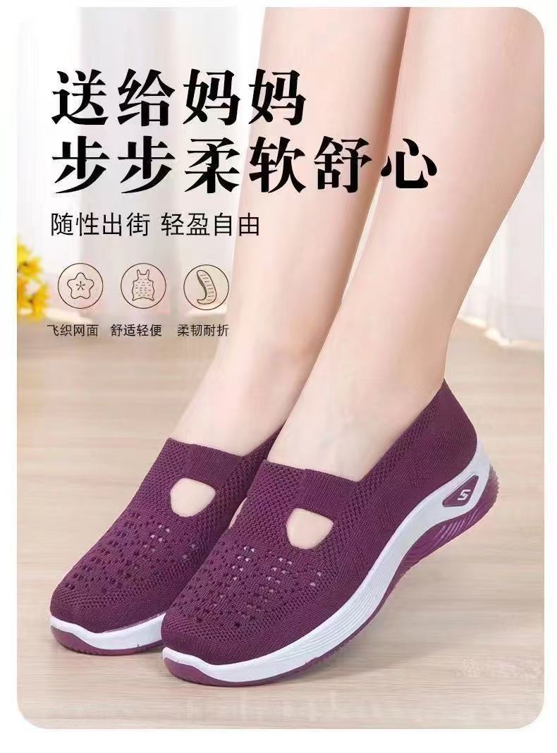 2025년 여름 여성화 통기성이 좋고 편안한 싱글 슈즈 크로스보더 중노년 어머니 신발 부드러운 밑창 캐주얼 메쉬 신발 여성용스토어 가기