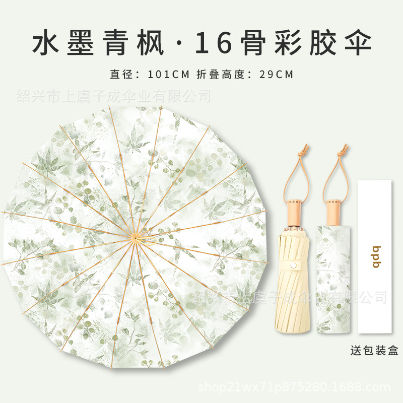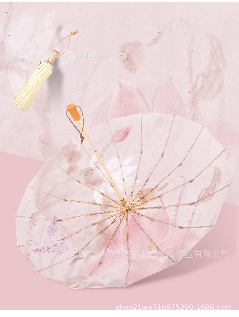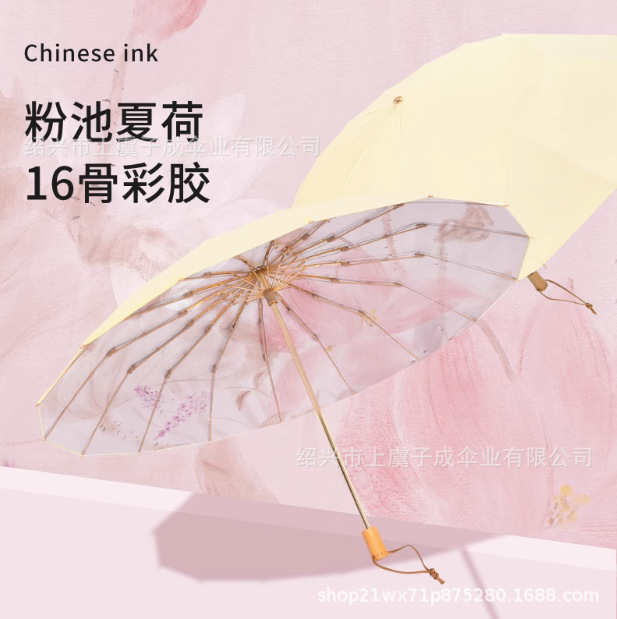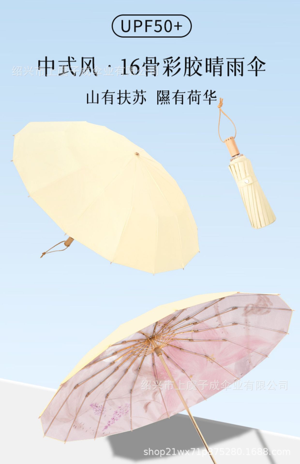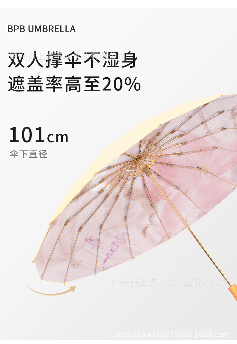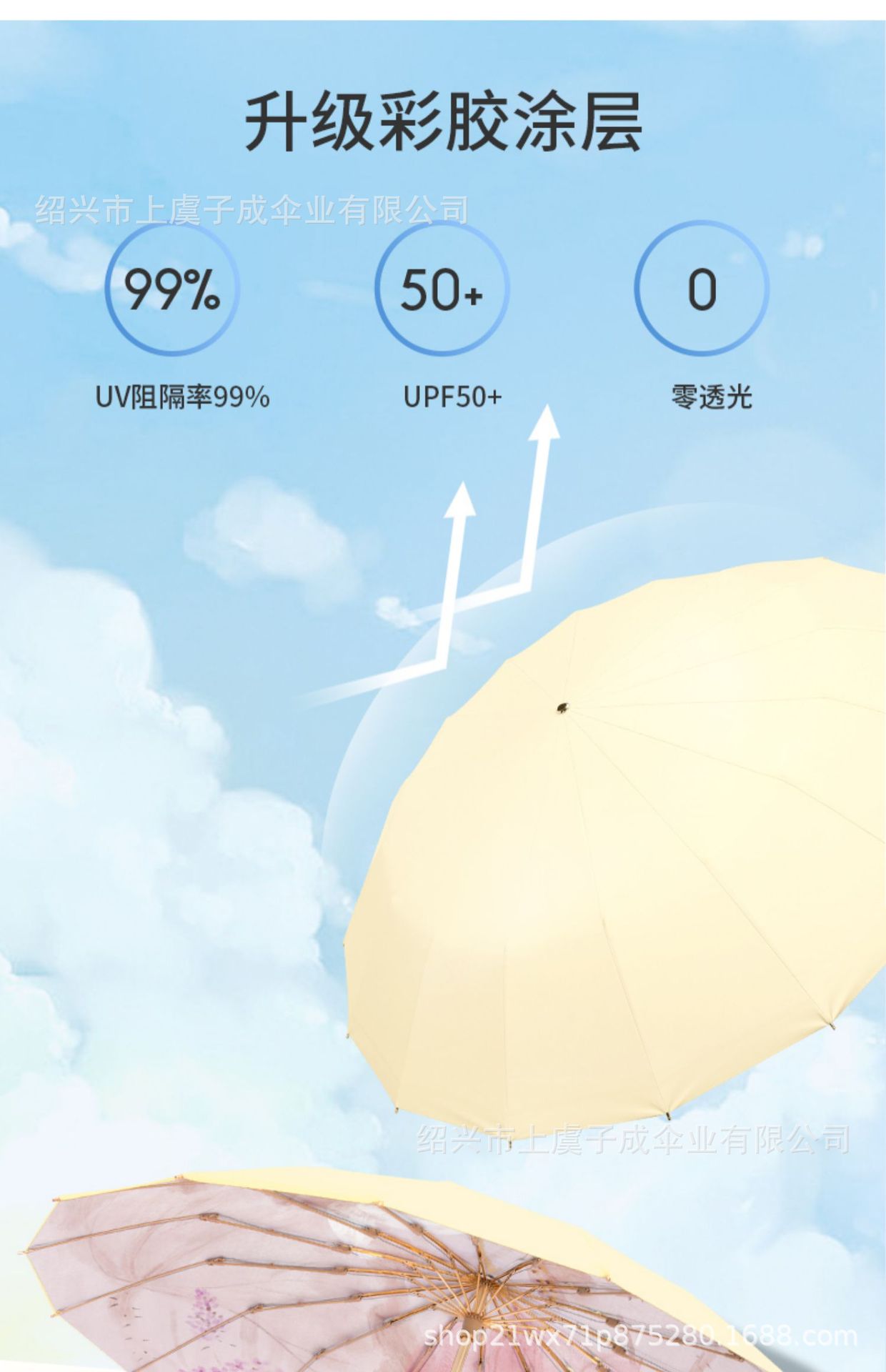고급 감각 16 본 우산 여성의 햇빛과 비 이중 사용 컬러 접착제 선 스크린 태양 우산 UV 보호 증가 3 배 햇빛 우산스토어 가기