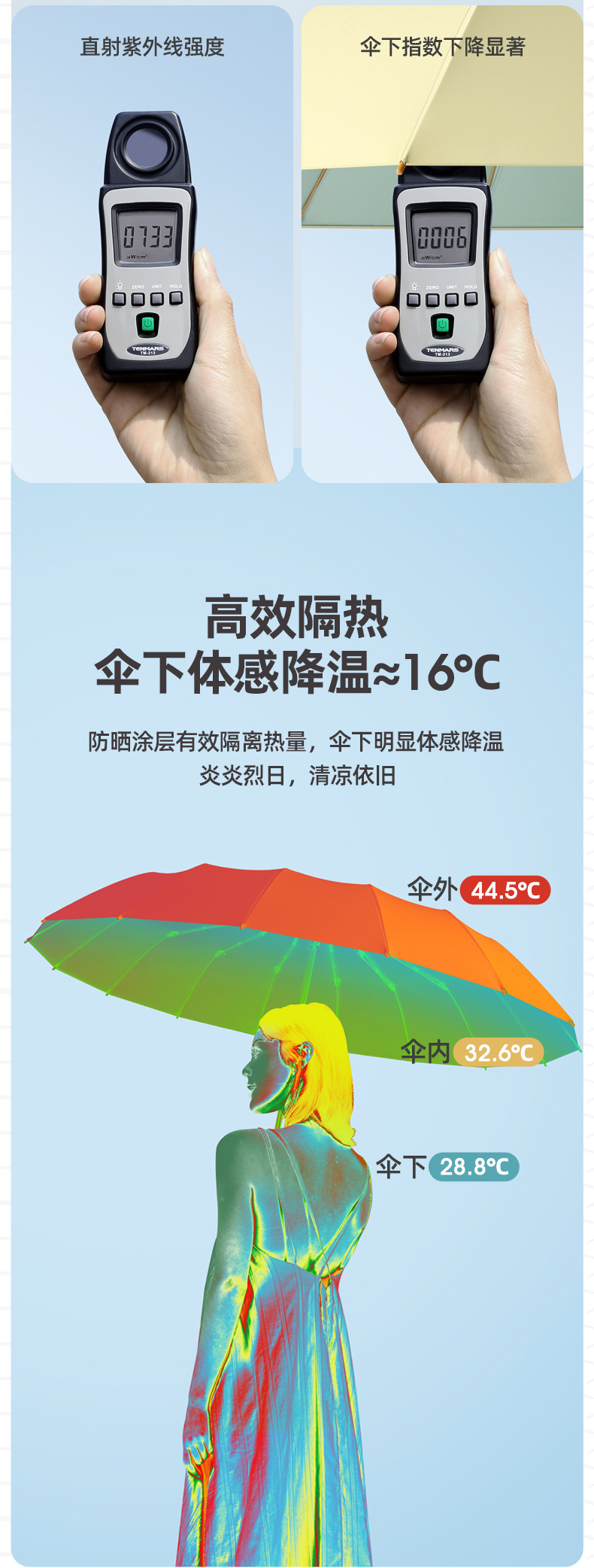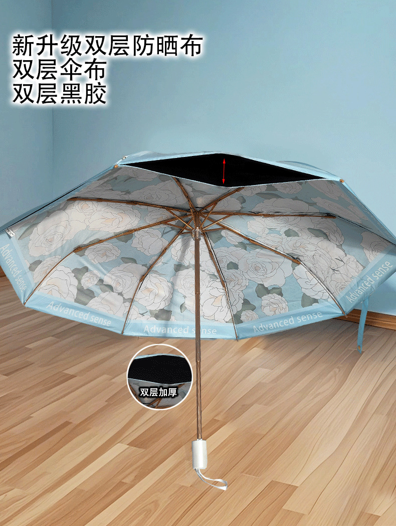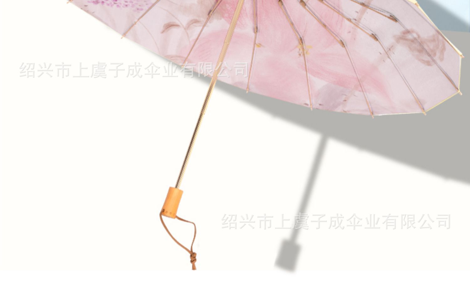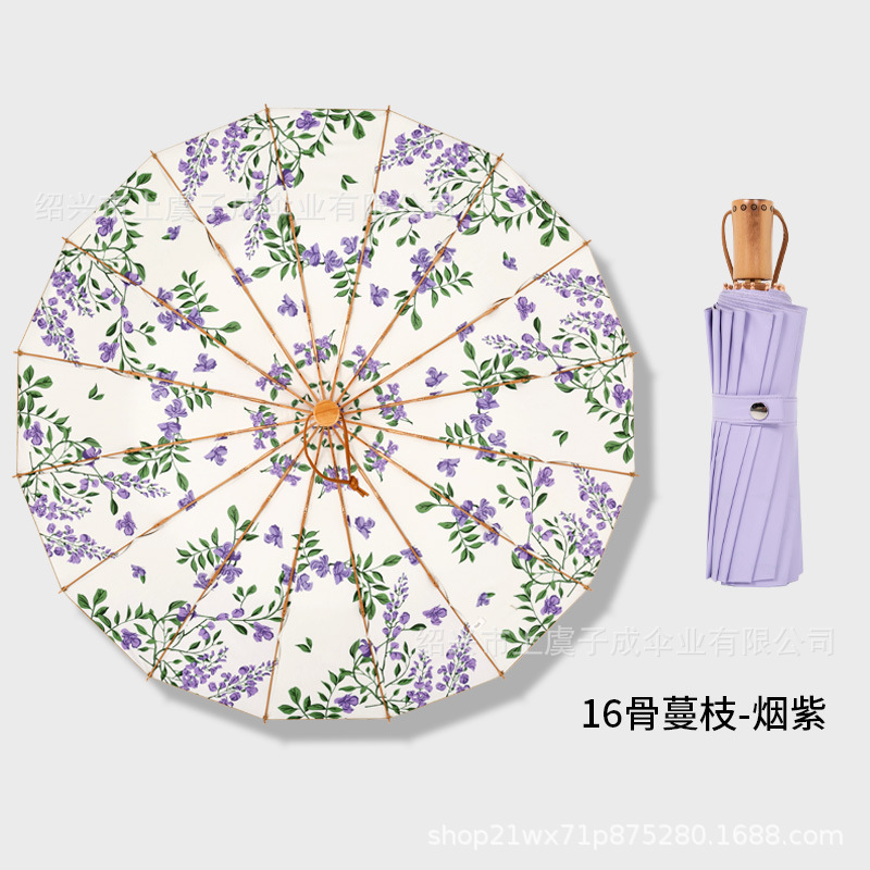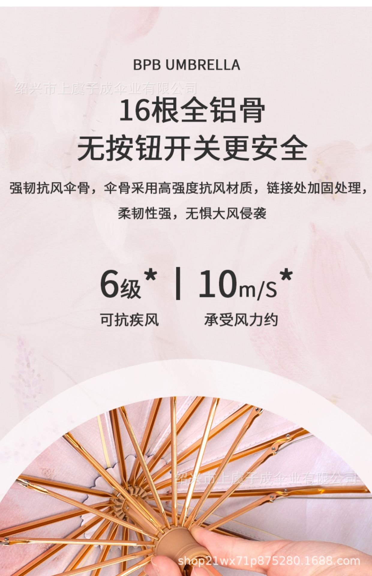고급 감각 16 본 우산 여성의 햇빛과 비 이중 사용 컬러 접착제 선 스크린 태양 우산 UV 보호 증가 3 배 햇빛 우산스토어 가기