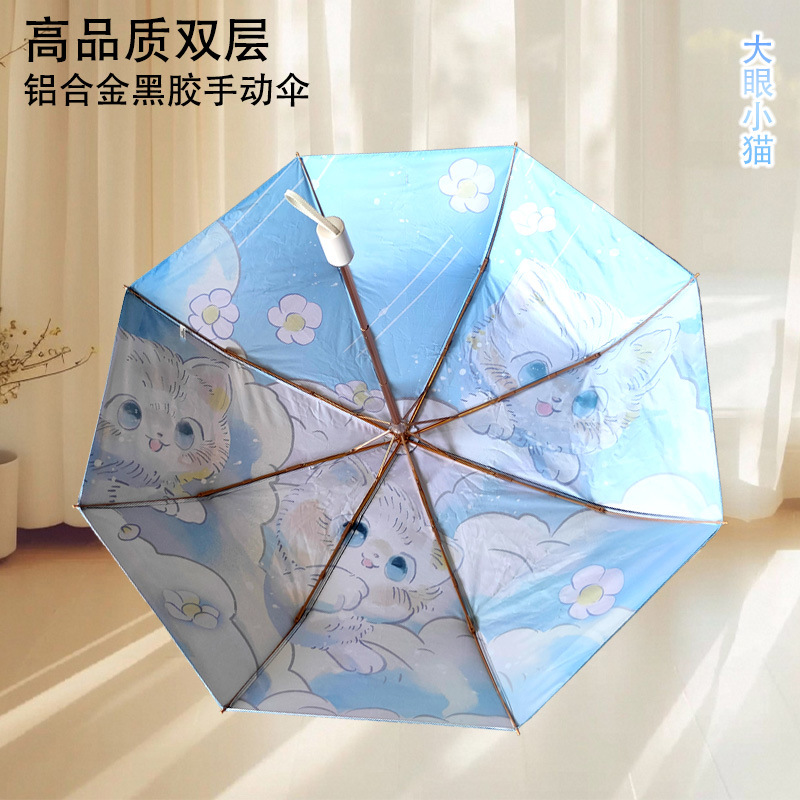 • 알루미늄 합금 우산 꽂이 [8 갈비뼈 이중층 두꺼운 비닐] 큰 눈 새끼 고양이