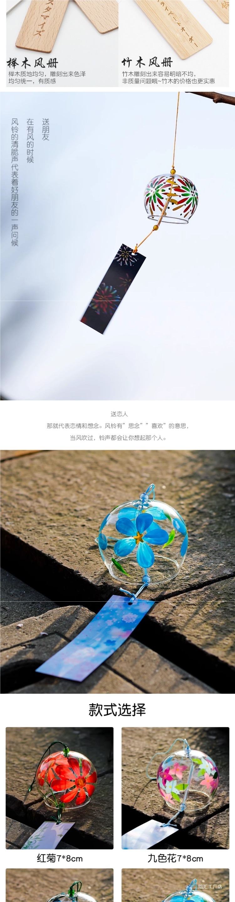 일본 벚꽃 바람 종소리 수제 유리 일본식 선물 펜던트 귀여운 작은 펜던트 신선한 침실 펜던트