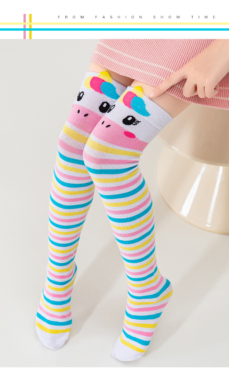 아마존 국경 간 새로운 어린이 무릎 위 스타킹 200 바늘 유니콘면 양말 ins 소녀 만화 양말스토어 가기