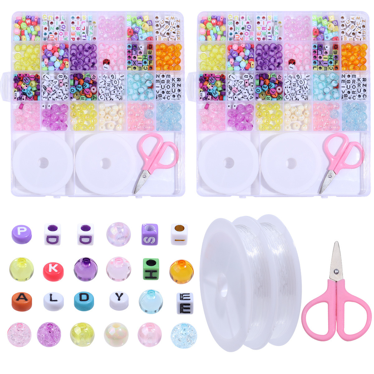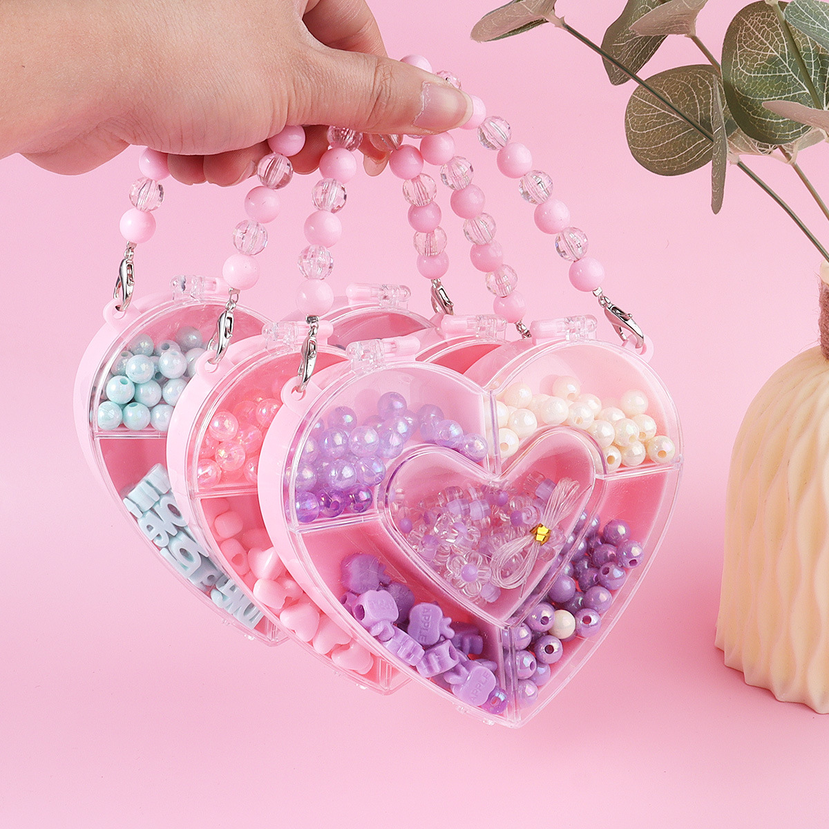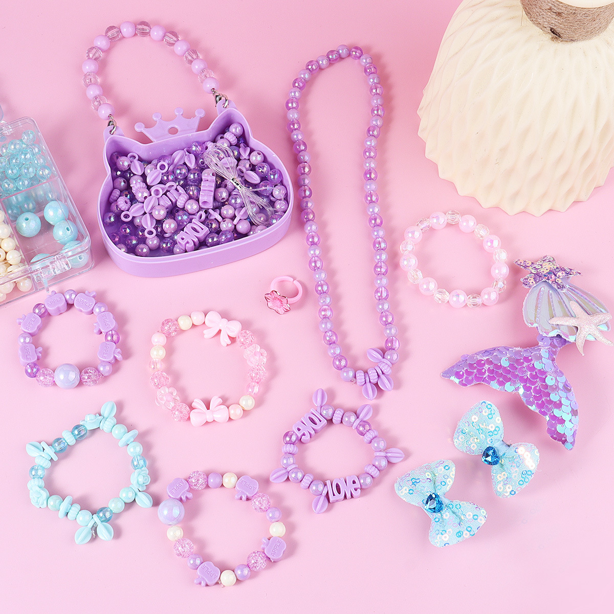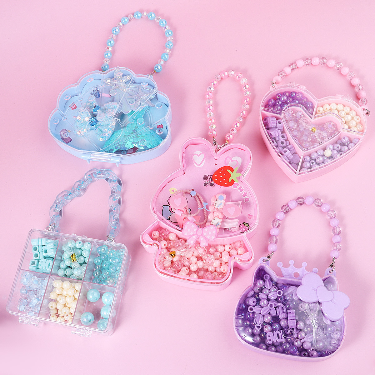 어린이 구슬 목걸이 팔찌 핸드백 착용 구슬 소녀 수제 DIY 만들기 소재 가방 아기 장난감 배치