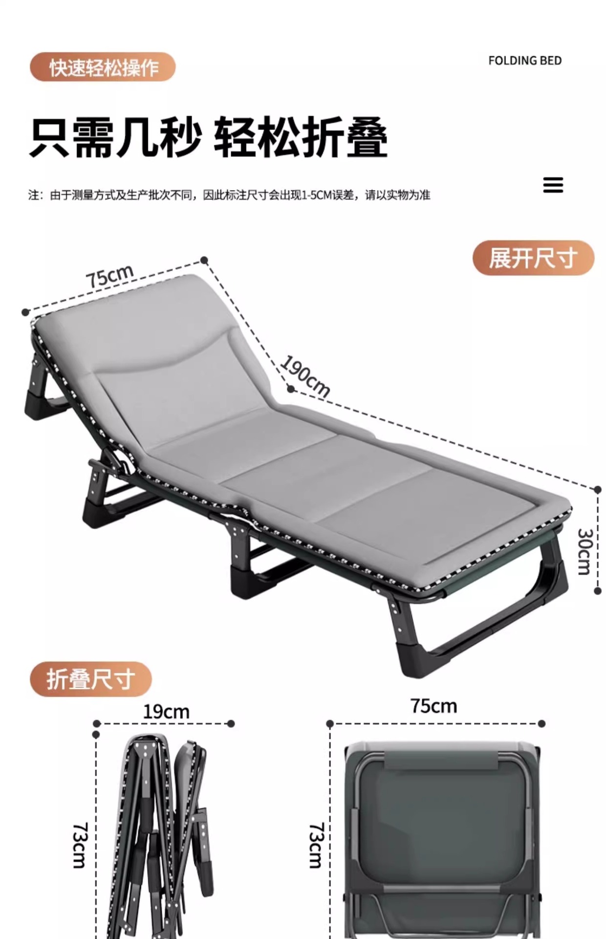 접이식 침대 싱글 침대 사무실 점심 식사 아티팩트 성인 가정용 싱글 리라이너 병원 동반 휴대용 육군 침대