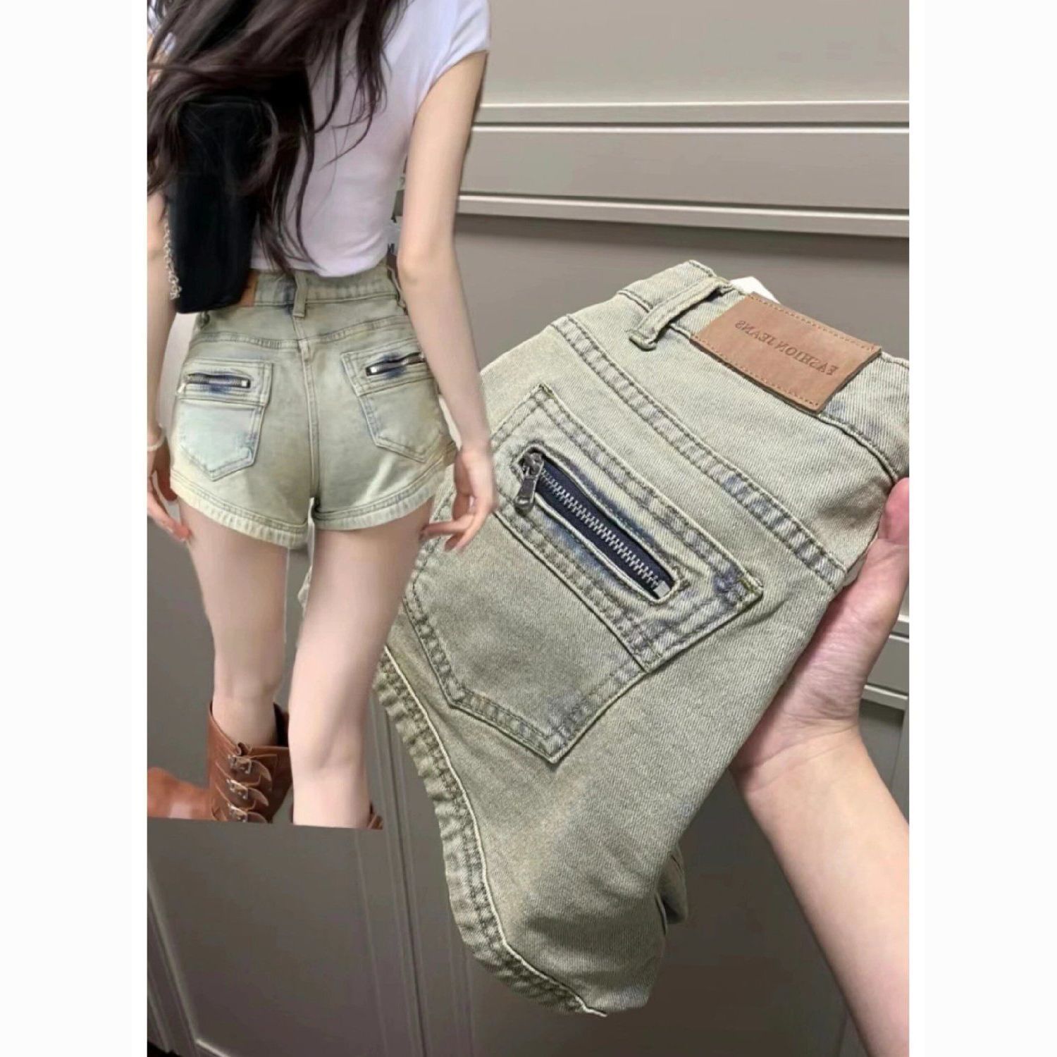 여성용 Douyin 인기 미국 데님 반바지, 레트로 여름 하이웨이스트 슬림 패션 디자인 3점 핫팬츠스토어 가기