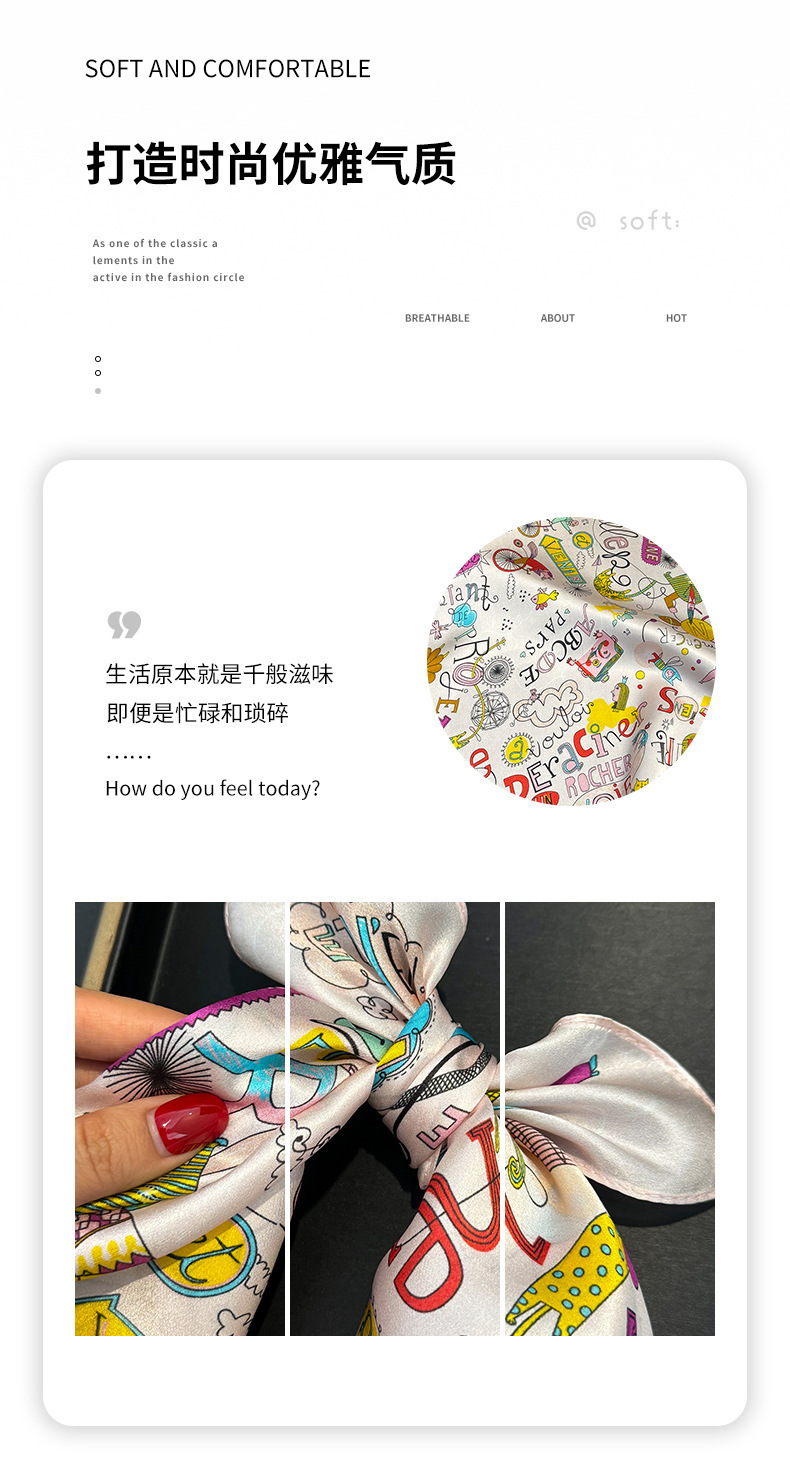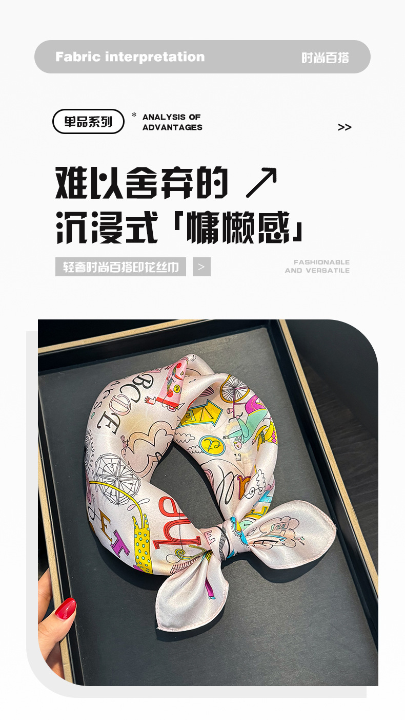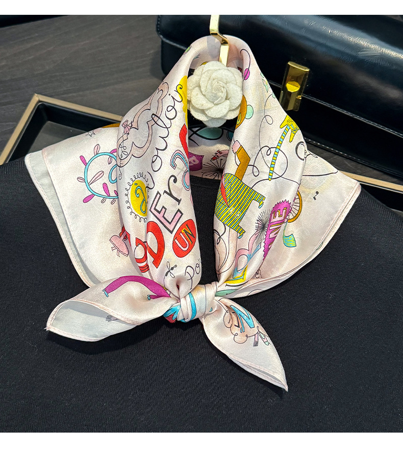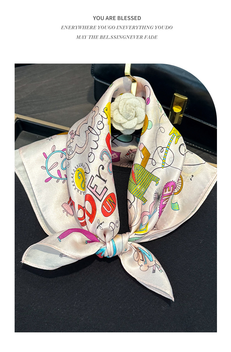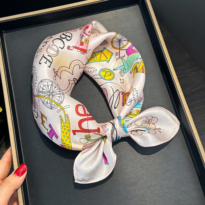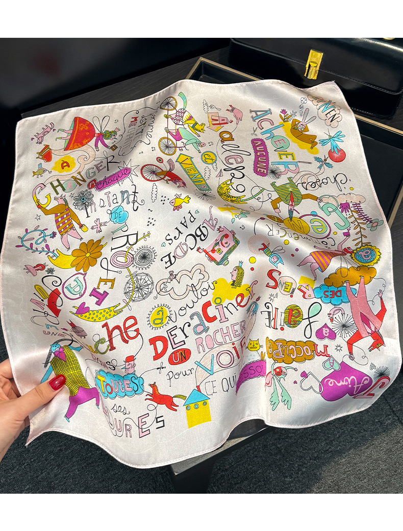 귀여운 만화 편지 풍선 실크 스카프 뽕나무 실크 소녀 공주 작은 사각형 스카프 봄과 가을 스카프스토어 가기