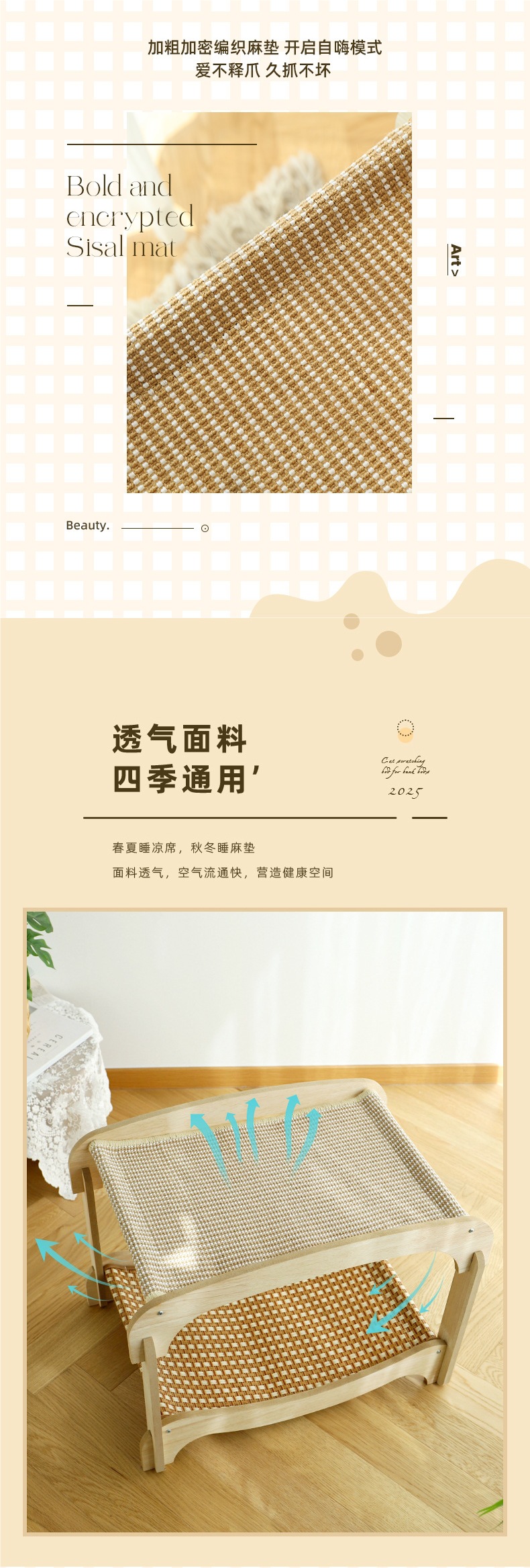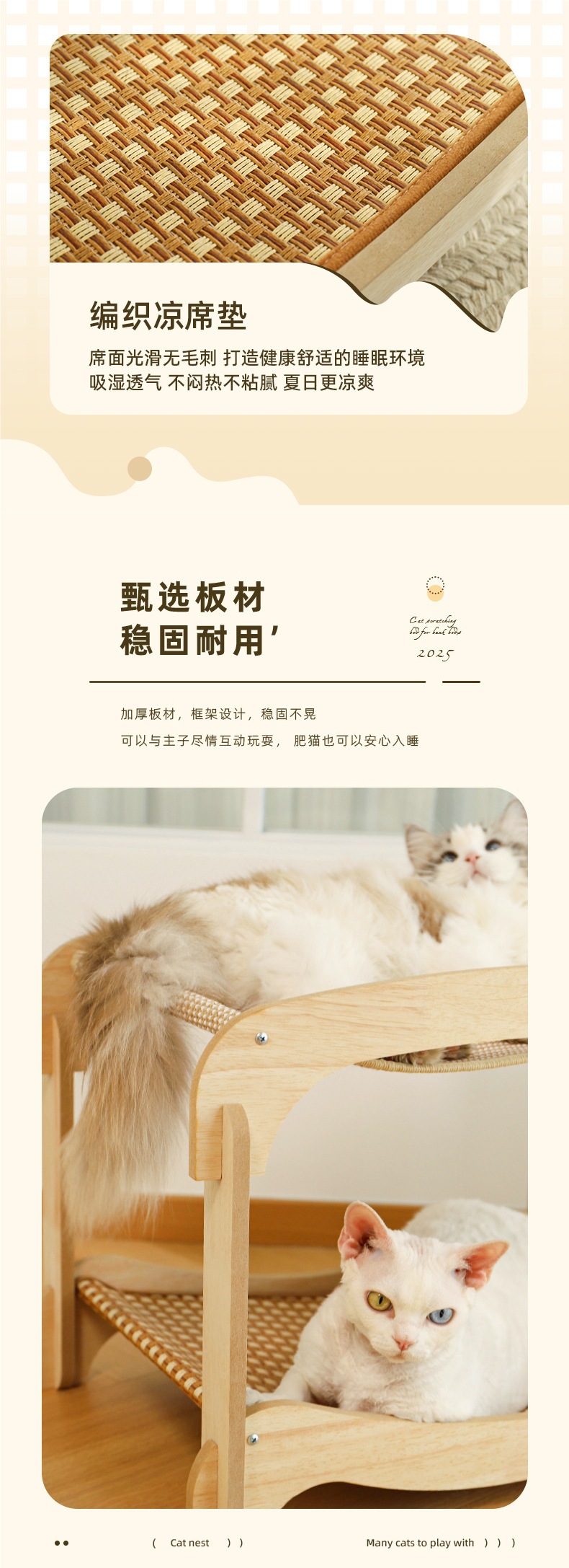 고양이 스크래치 보드, 고양이 둥지, 일체형 고양이 해먹, 2층, 사계절 사용 가능한 만능 등나무 매트, 교체 가능한 애완동물 침대
