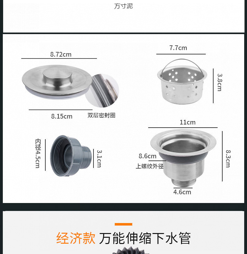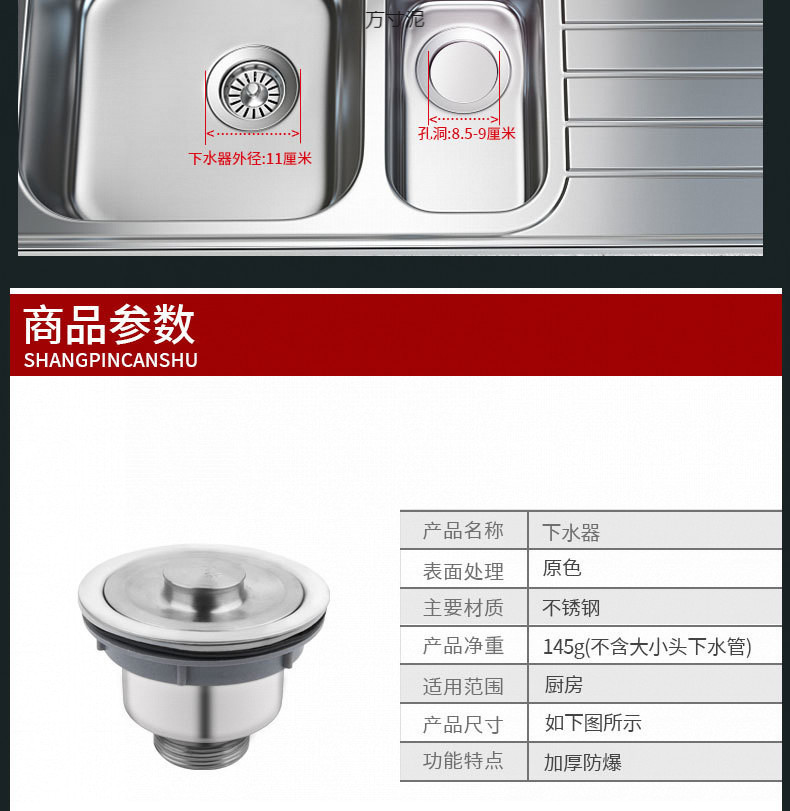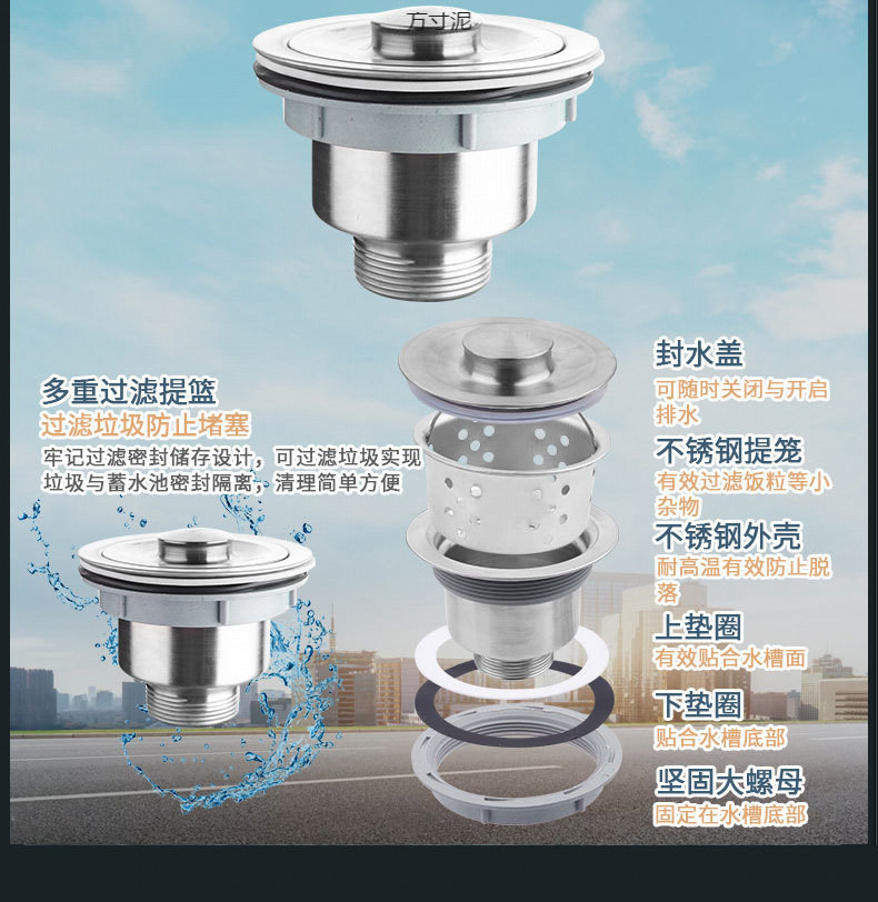 주방 접시 세척 분지 배수 팬 접시 세척 분지 드레인 단일 110 스테인레스 스틸 배수 바구니 세트 공장스토어 가기