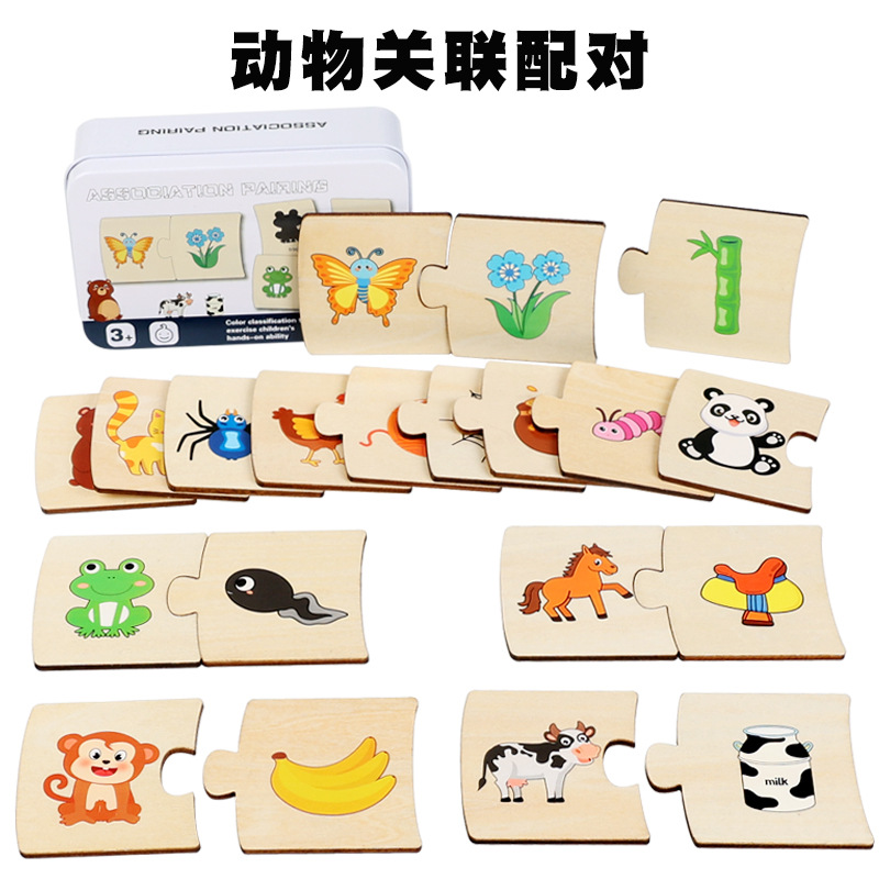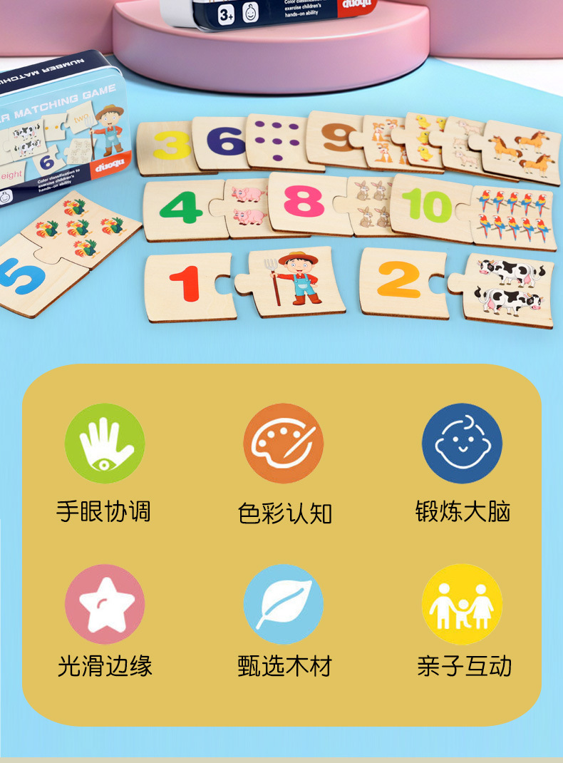 국경 간 CPC CE 어린이 철 상자 디지털 계몽 매칭 나무 동물 음식 퍼즐 보드 조기 교육 교육 장난감스토어 가기