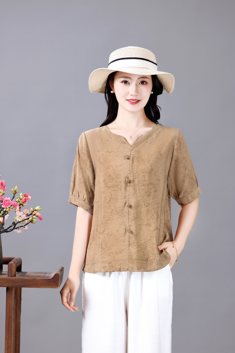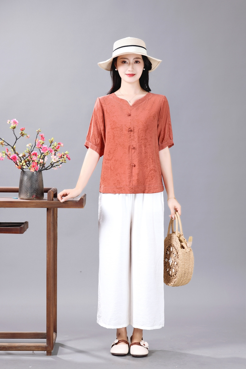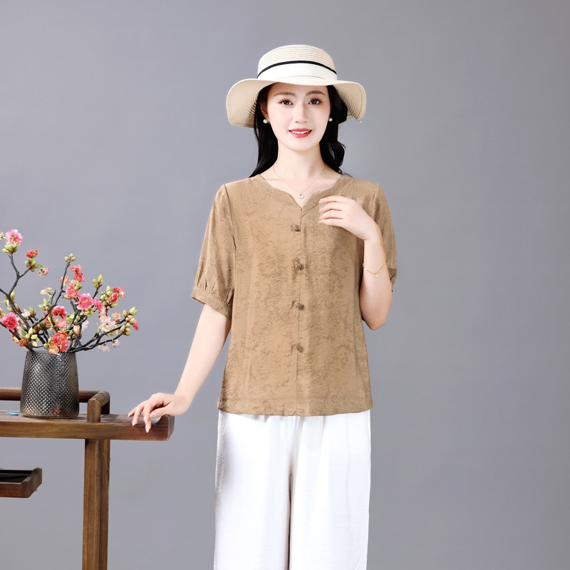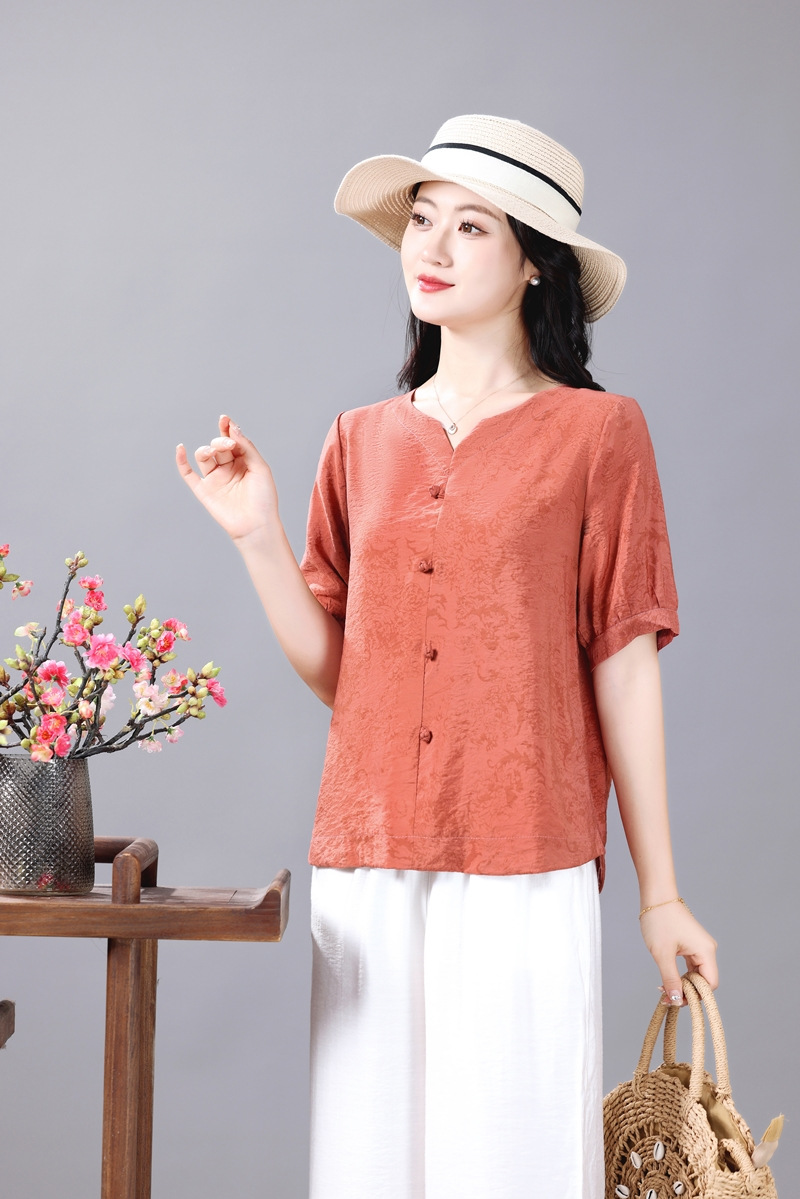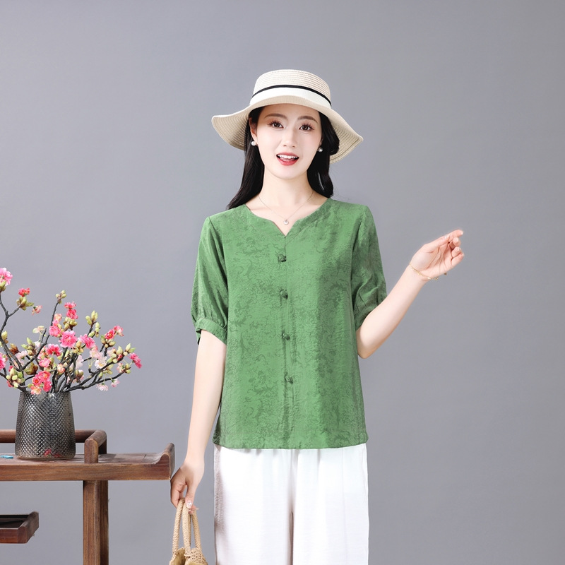 새로운 여름 느슨한 국가 스타일 최고 티셔츠 문학 스타일 중국 어머니의 작은 셔츠 풀오버 세대
