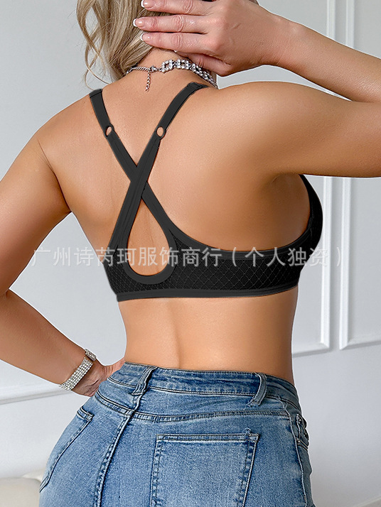 크로스보더 대형 사이즈 유럽 및 미국 스타일 테무 브라, 앞후크 디자인으로 더 잘록하게 모아주고, 크로스백 디자인으로 등이 아름답게 보이고, 백리스 디자인으로 가슴을 더 돋보이게 합니다.