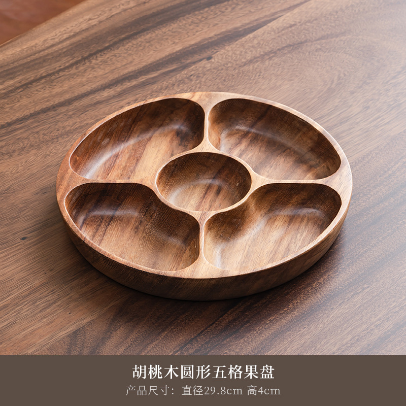 • 호두나무 원형 5칸 과일 접시