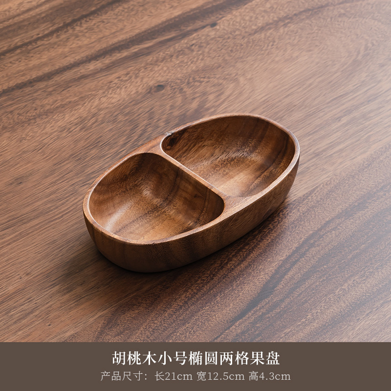 • 호두나무 작은 타원형 2칸 과일 접시