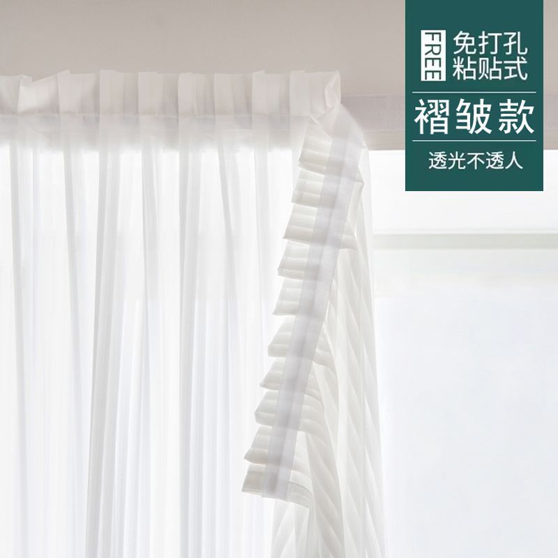 창 화면 커튼 펀치 무료 설치 침실 발코니 간단한 자기 접착 벨크로 렌탈 룸 음영 빛 사람에게 투과성