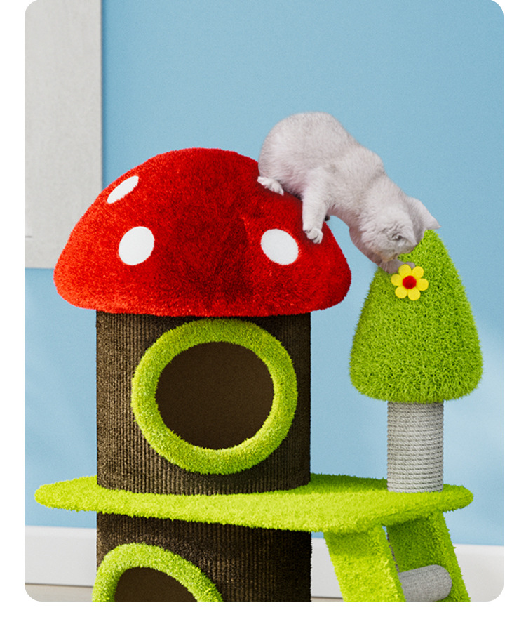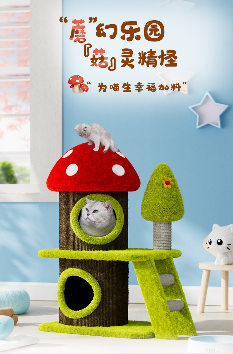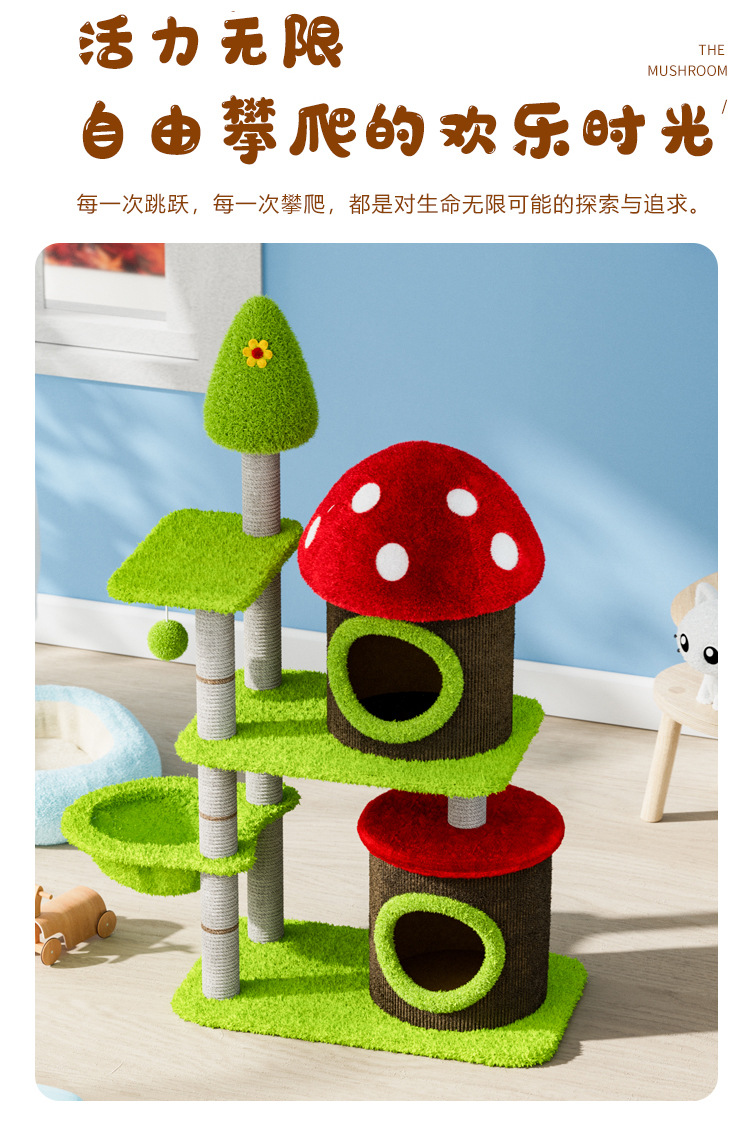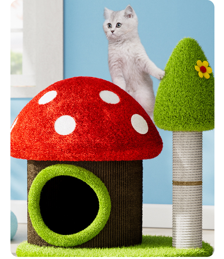 새로운 버섯 집 고양이 클라이밍 프레임 고양이 둥지 일체형 스윙 침대 사이잘 고양이 선반 고양이 스크래치 컬럼 고양이 장난감 크로스보더스토어 가기