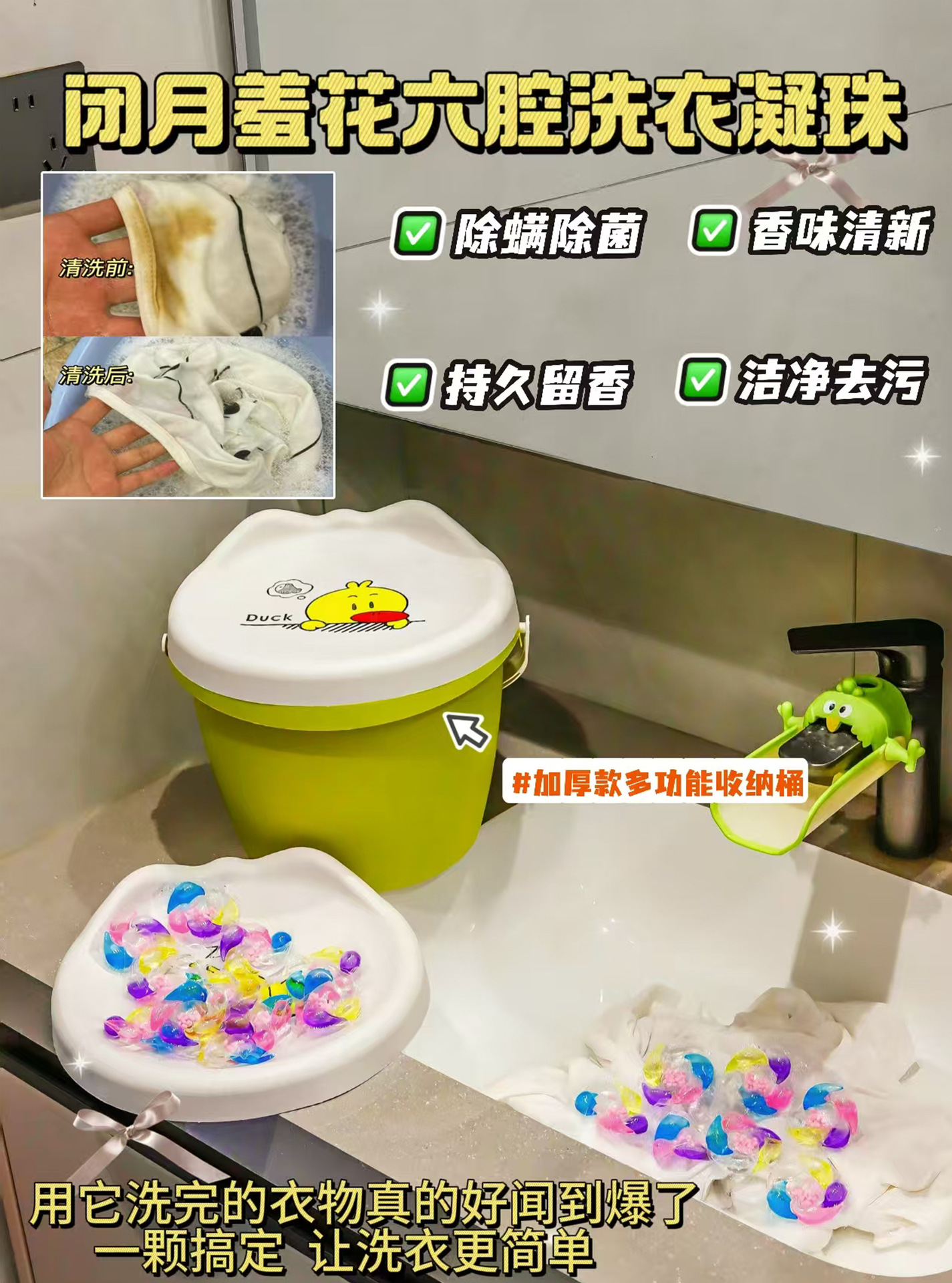 대형 앉을 수 있는 스툴 세탁비즈, 향비즈, 6-in-1 향청소, 오염제거, 오래 지속되는 향 세탁비즈
