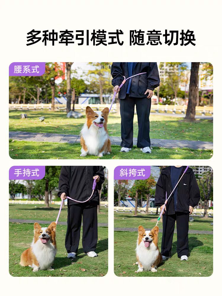 애완동물 P 로프 애완동물 견인 로프 다기능 P 체인 개 산책 로프 크로스 바디 핸즈프리 소형, 중형 및 대형견 방폭형