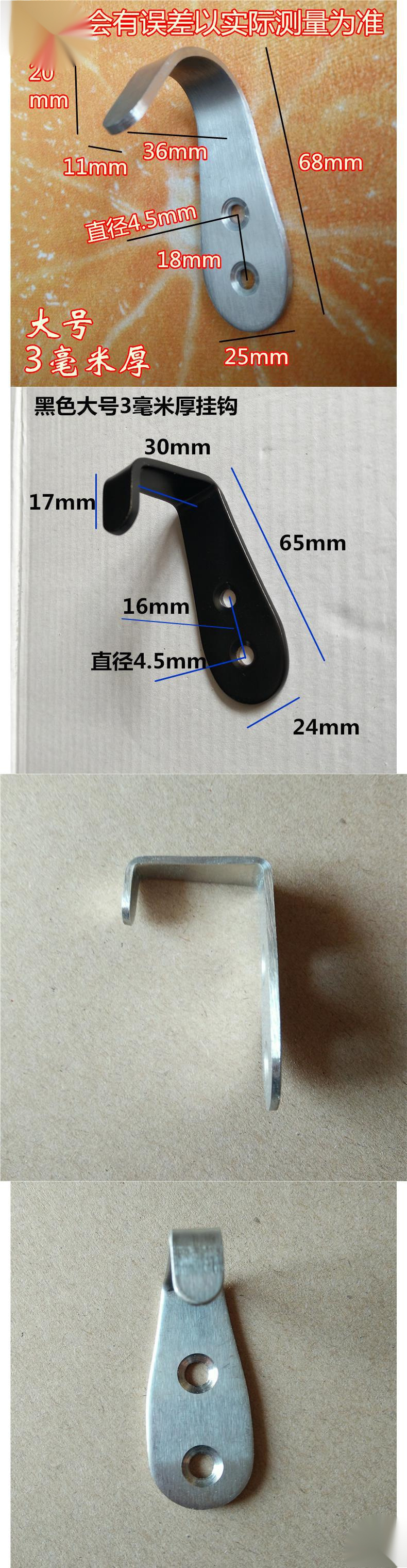 • 스테인레스 스틸 대형 둥근 입 3mm 두께 후크 1개