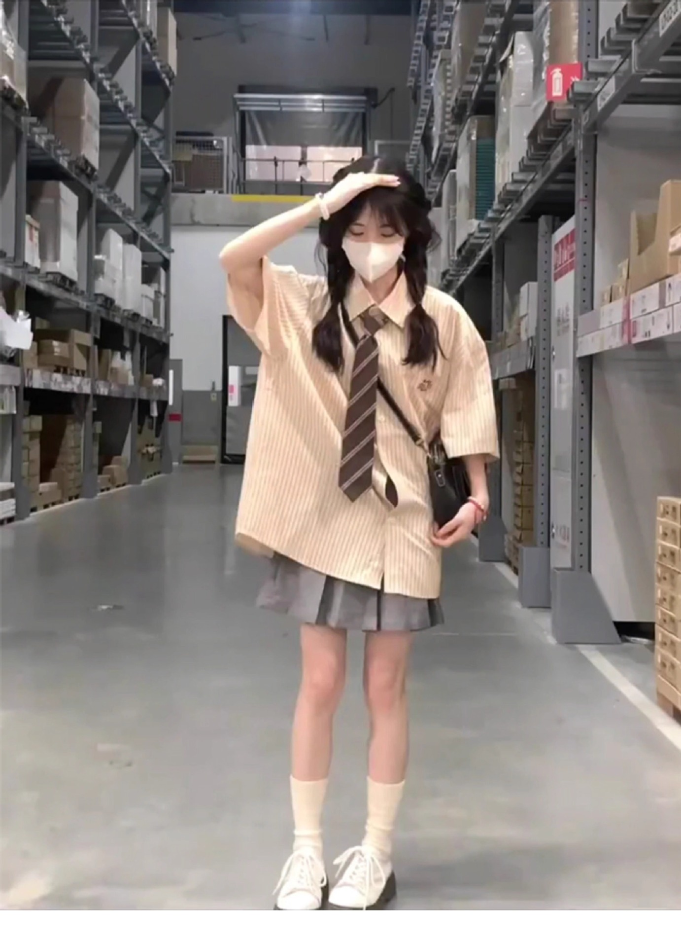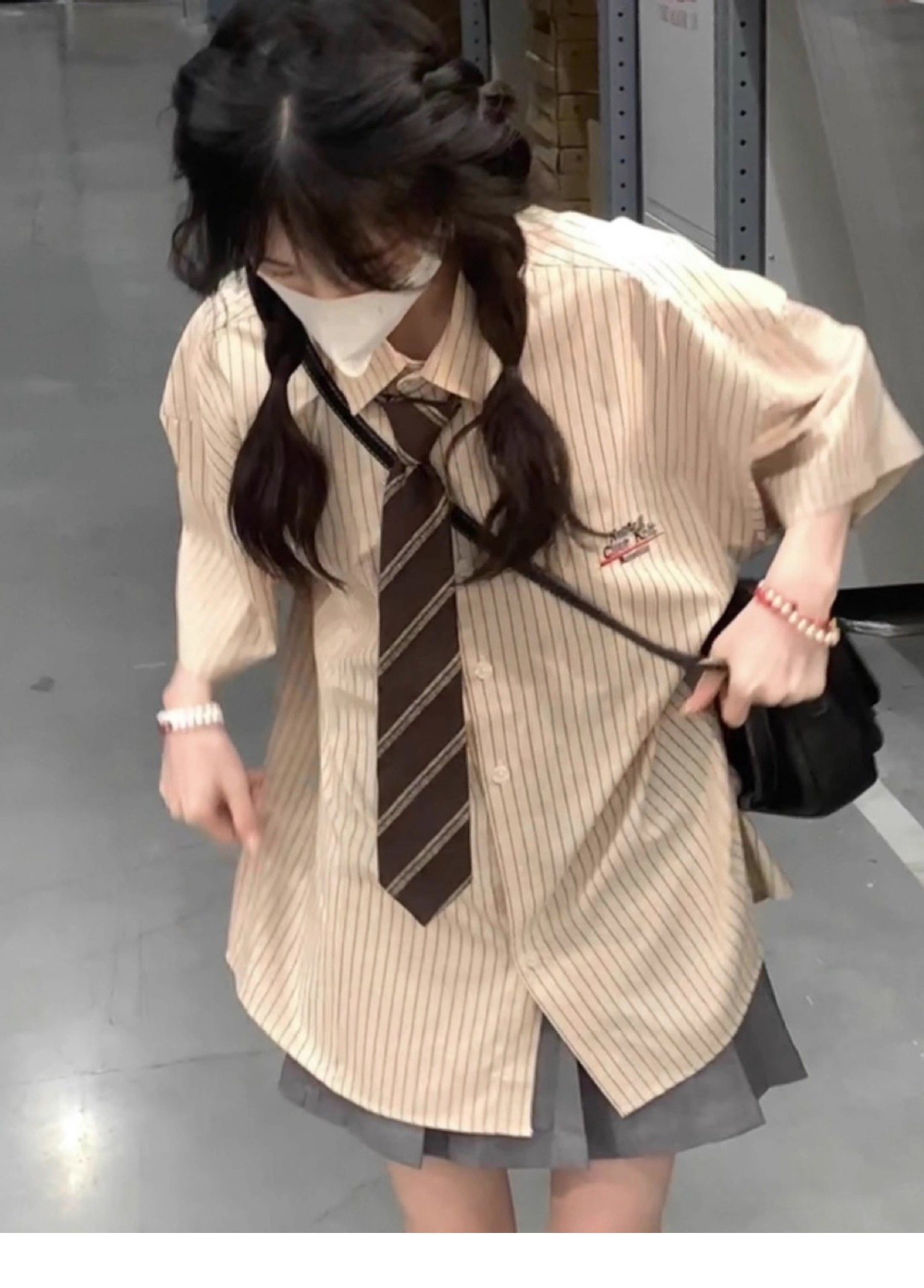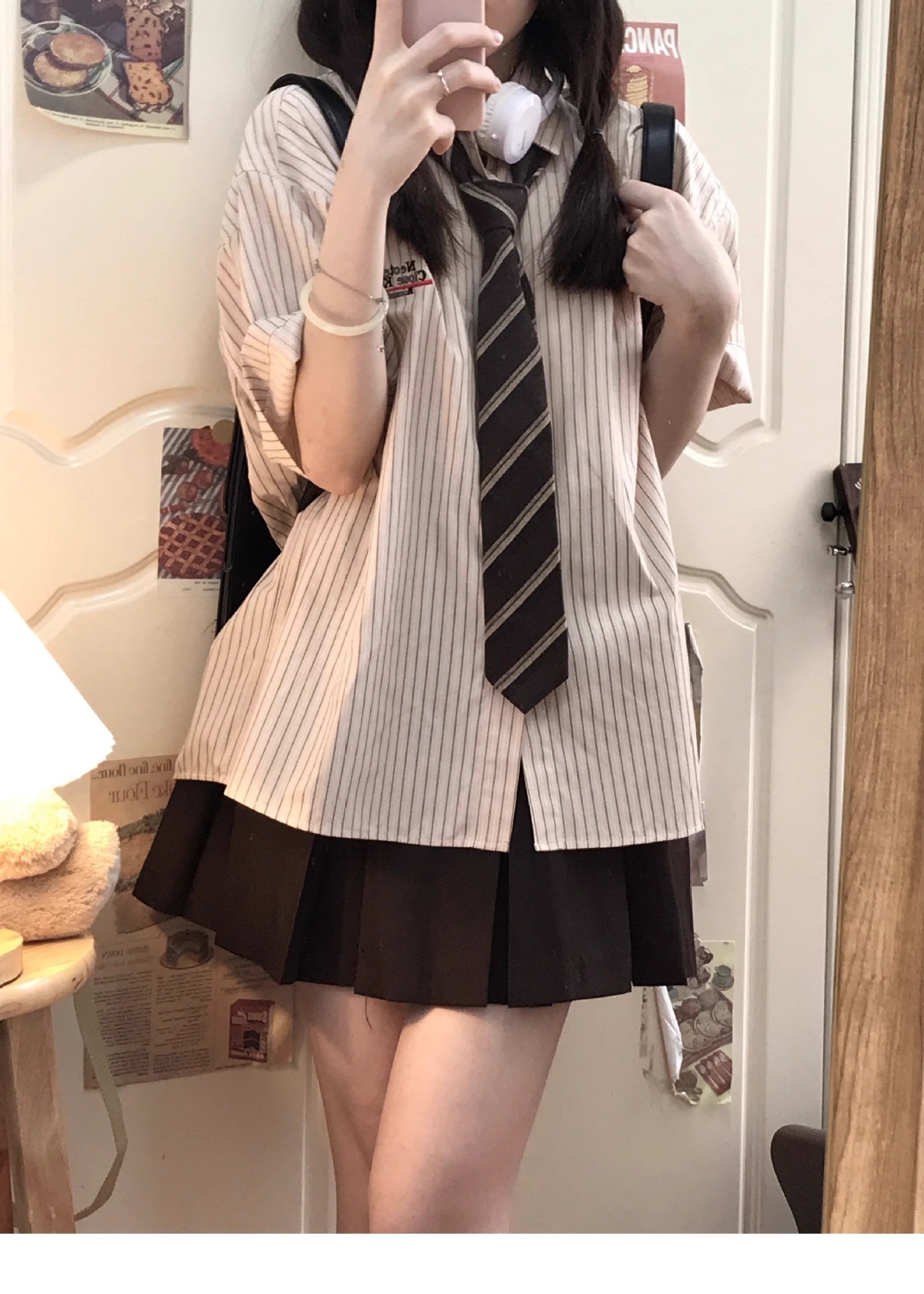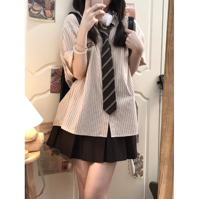여름 일본 대학 스타일 JK 유니폼 원피스 여성 디자인 센스 틈새 반팔 셔츠 주름 치마 투피스 세트스토어 가기