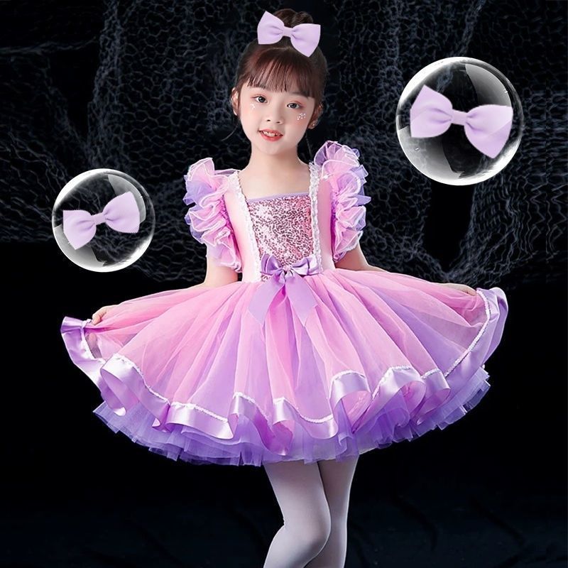 새로운 공연 어린이 공연 의상 거즈 스커트 투투 스커트 댄스 소녀 스팽글 드레스 유치원 공주 어린이 날스토어 가기