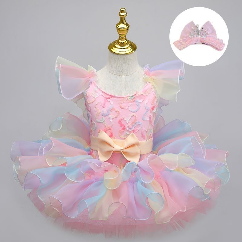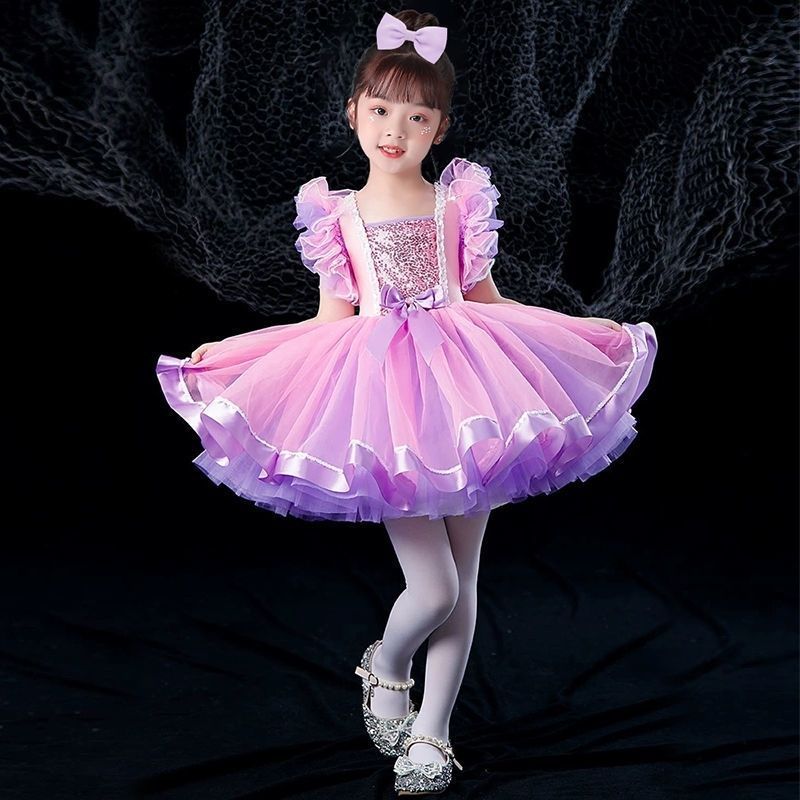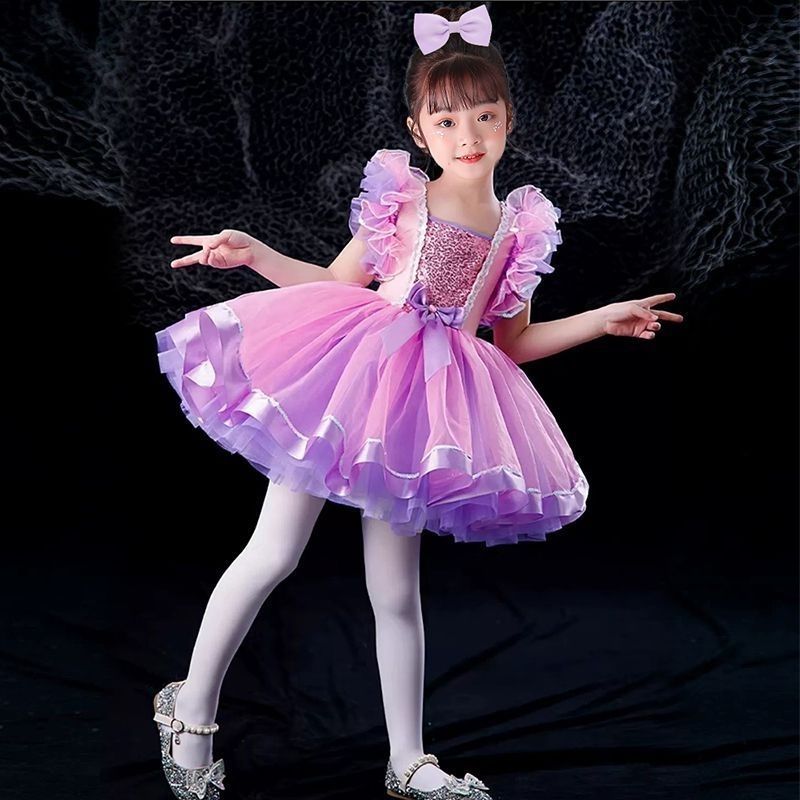 새로운 공연 어린이 공연 의상 거즈 스커트 투투 스커트 댄스 소녀 스팽글 드레스 유치원 공주 어린이 날