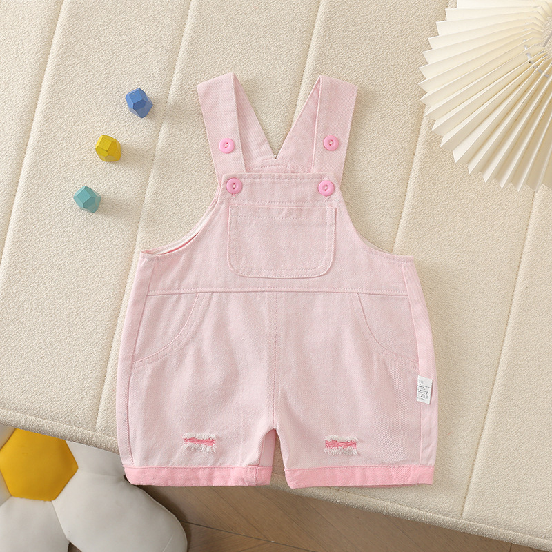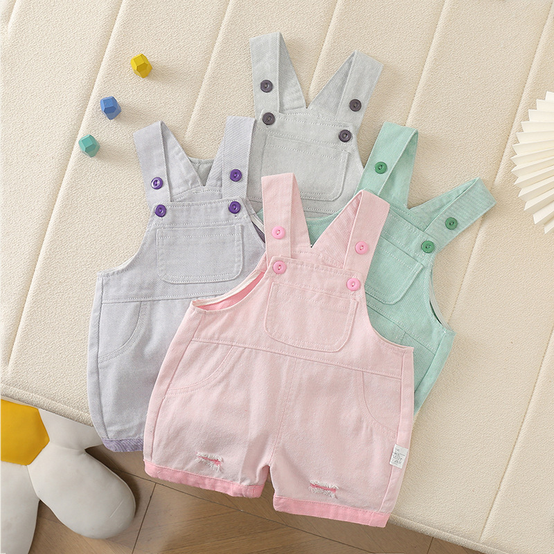 여름 어린이 세련된 패션 청바지 캐주얼 아기 느슨한 바지 다채로운 데님 스트랩 반바지