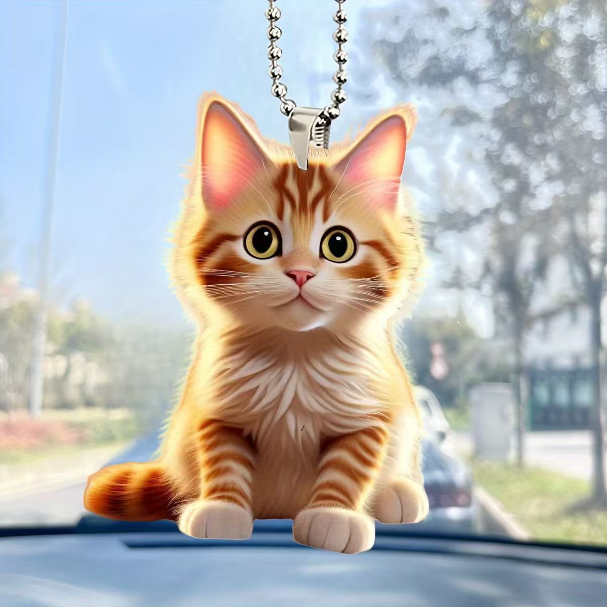 2d 창조적 인 새로운 귀여운 작은 오렌지 고양이 펜던트 크로스 보더 아크릴 플랫 자동차 백미러 펜던트 휴일 장식품