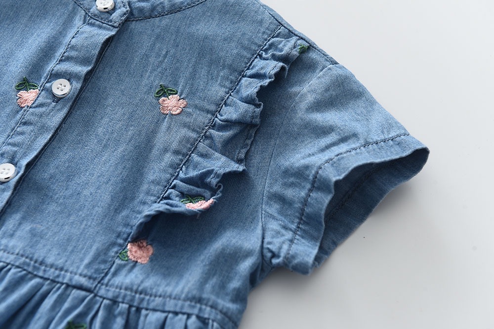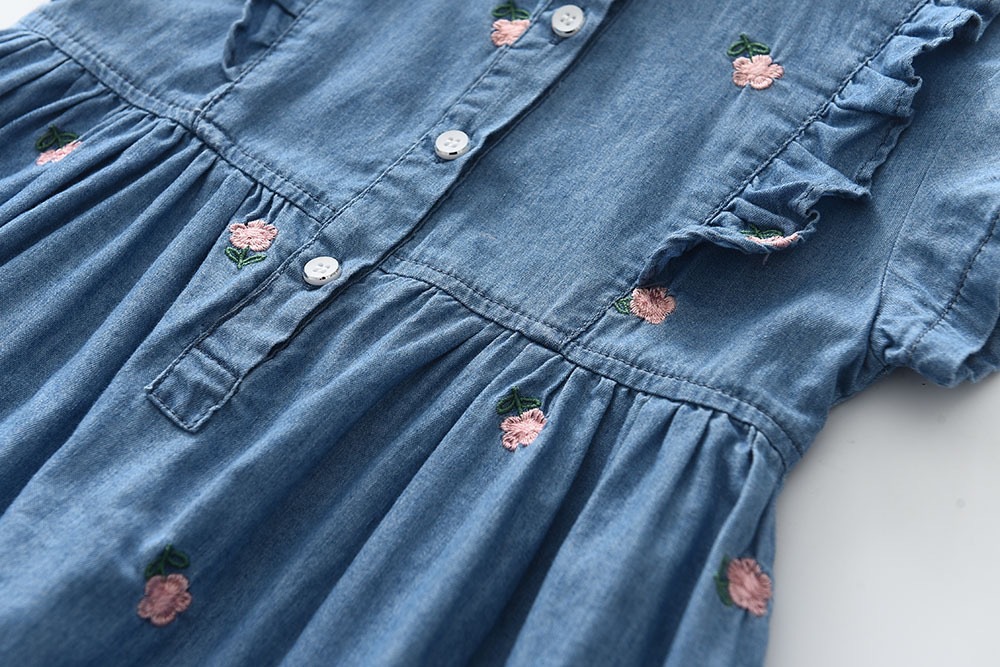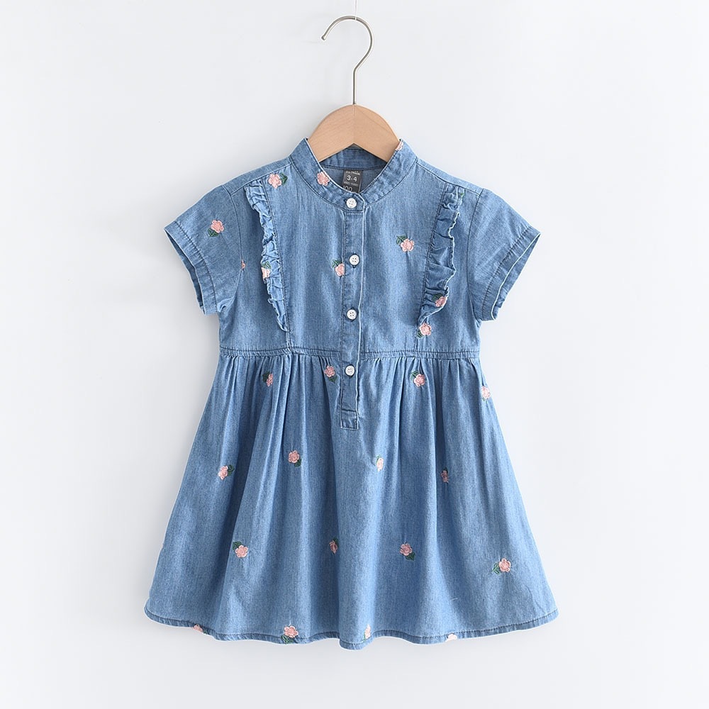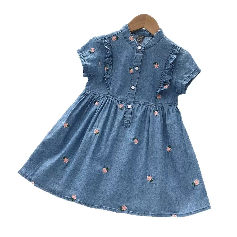 2025夏季新款女孩薄款牛仔连衣裙洋气小花裙