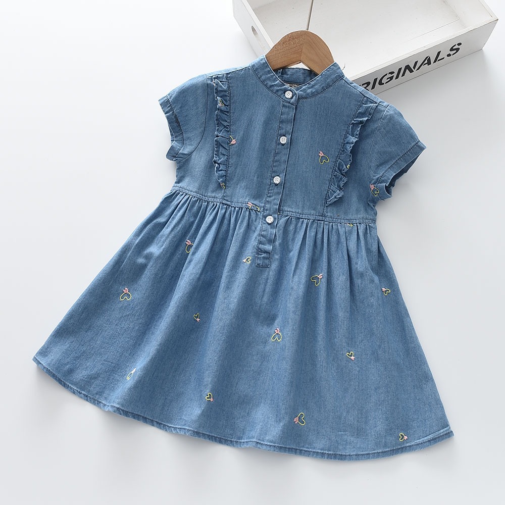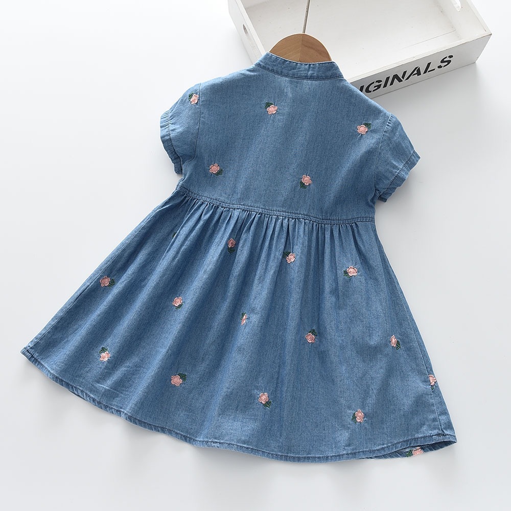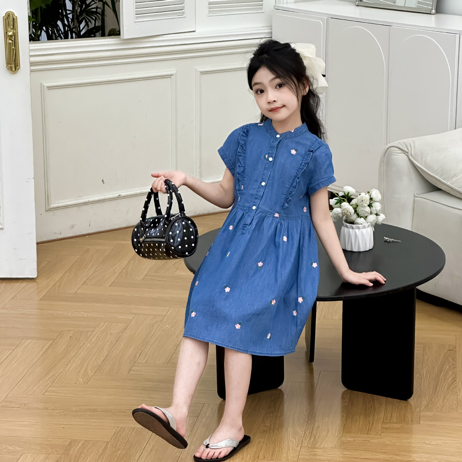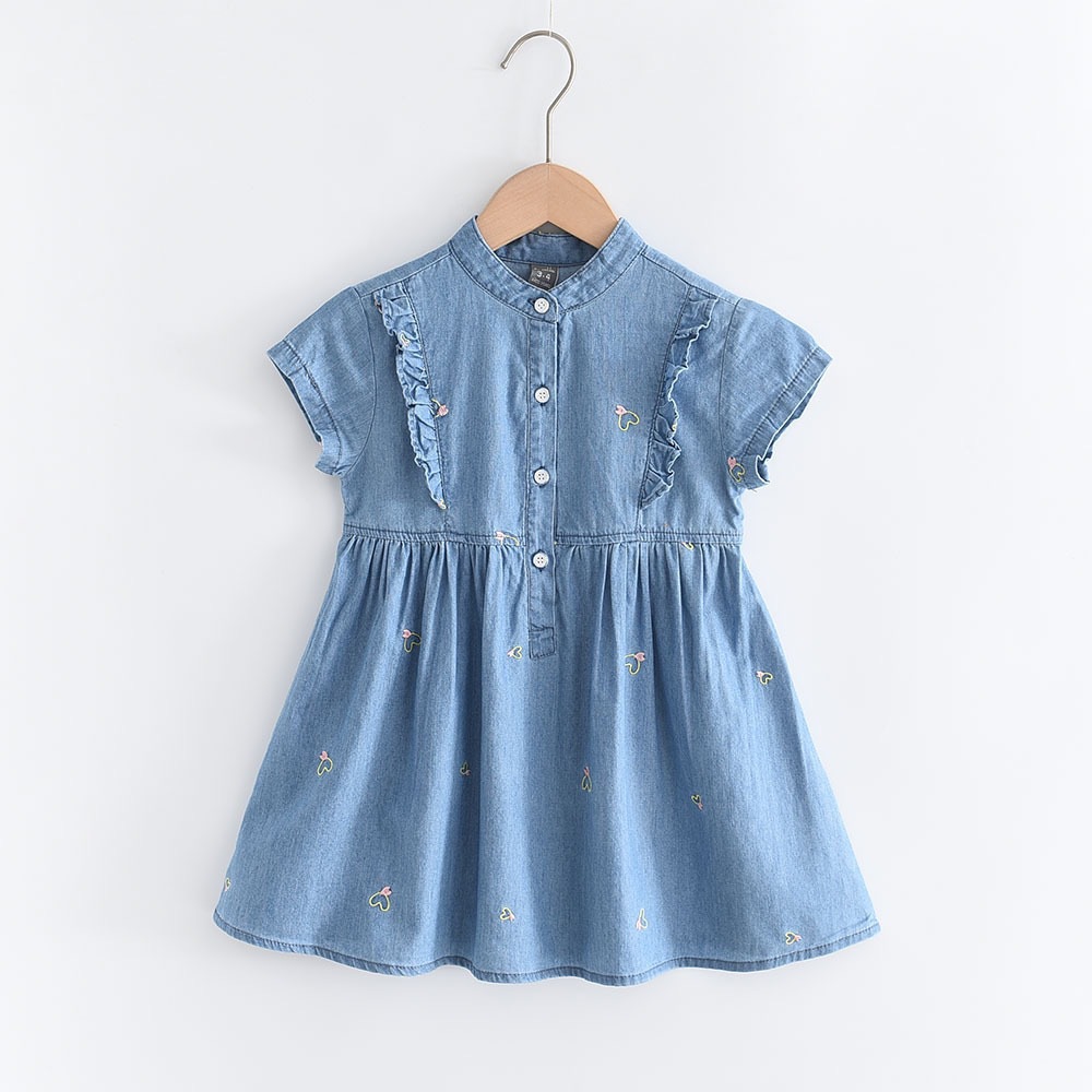 2025夏季新款女孩薄款牛仔连衣裙洋气小花裙