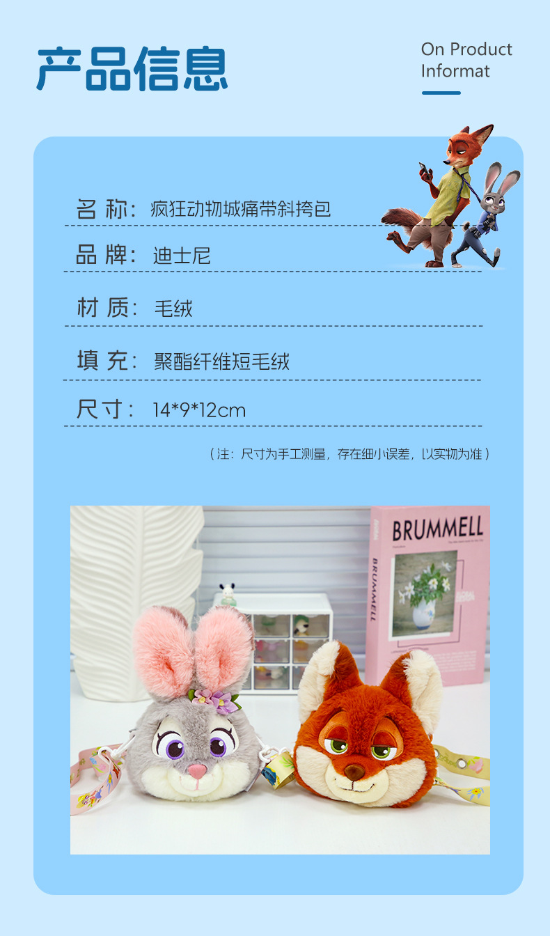 정품 디즈니 주토피아 주디 닉 봉제 크로스 백 통증 스트랩 어깨 가방 생일 선물 도매