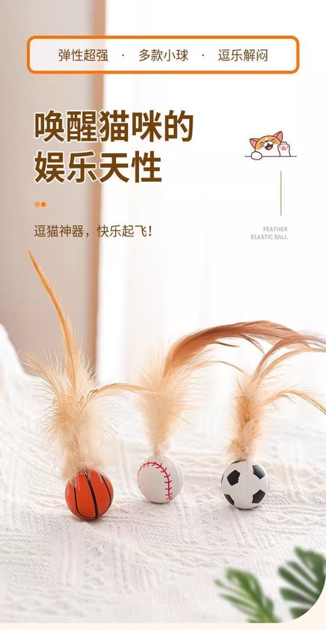 깃털 치킨 깃털과 함께 고양이 장난감 튀는 공 재미 고양이 스틱 셀프 하이 지루함 고양이와 개 인터랙티브 애완 동물 장난감 공 크로스 테두리를 완화스토어 가기