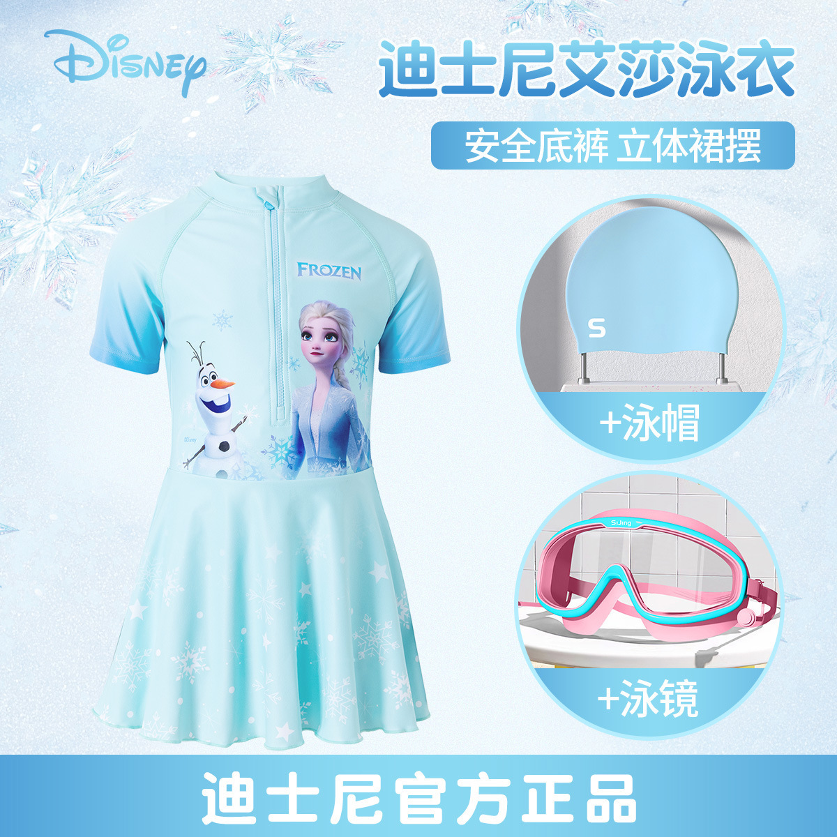 • [디즈니 정품] 엘사 공주 원피스 수영복 + 수영 고글 + 수영 모자