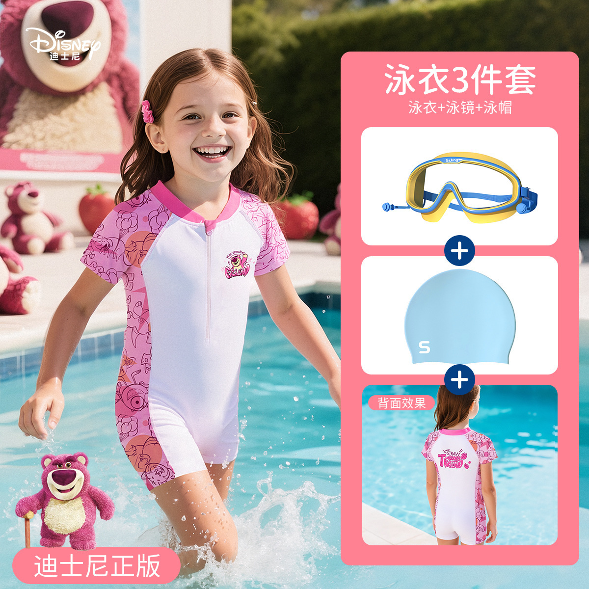 • [디즈니 정품] 딸기곰 원피스 수영복 + 수영고글 + 수영모