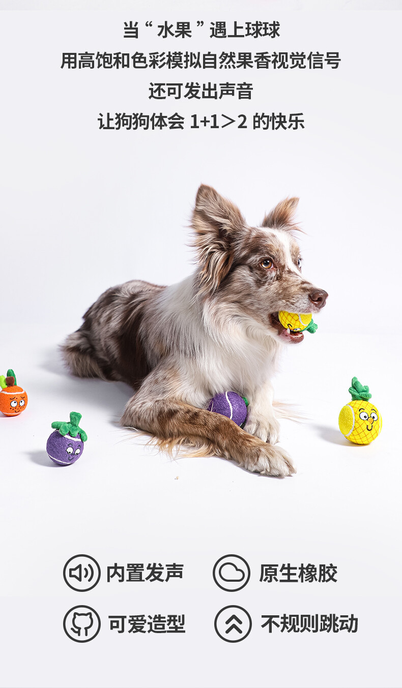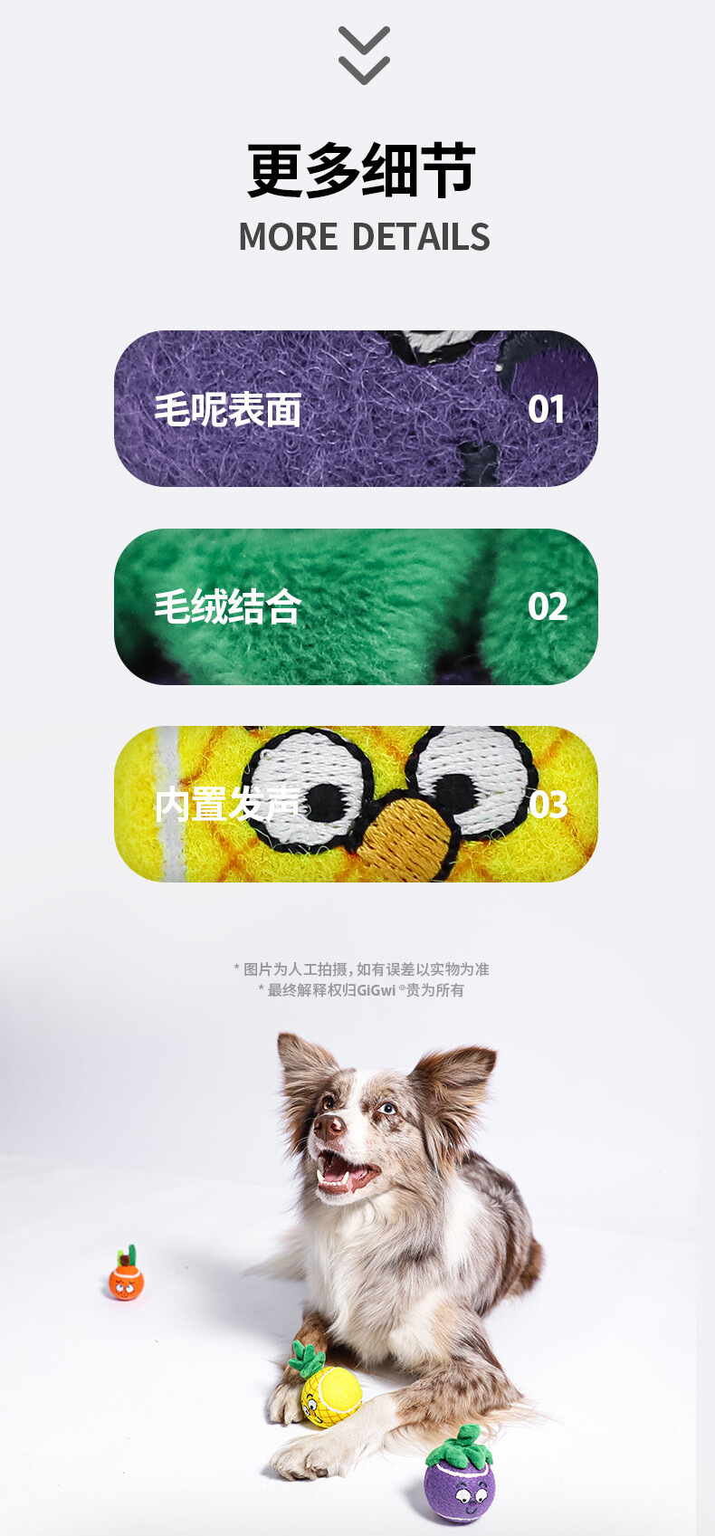 신제품 GiGwi는 개 장난감, 과일 사운드 볼, 테니스 공, 치아 연삭 및 지루함 해소 도구, 애완 동물 용품입니다.스토어 가기
