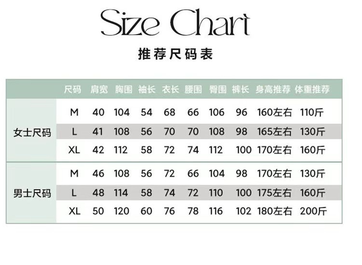 女士尺码: M码(115斤以内身高158以内) L(135斤以内身高165以内) XL(155斤以内身高170以内)