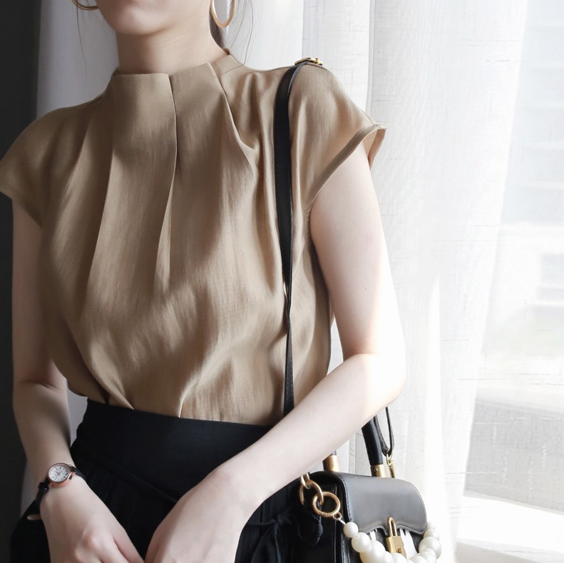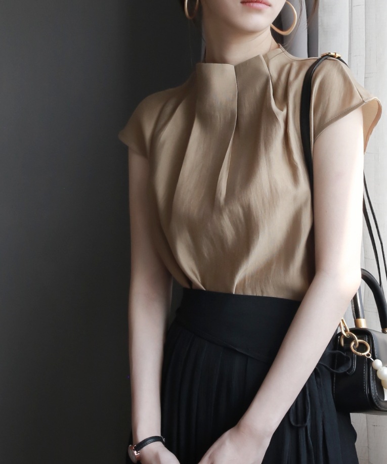 3 차원 주름진 하이 엔드 셔츠 여성의 2025 여름 새로운 우아한 통근 패션 세련된 셔츠 슬림 룩 탑스토어 가기