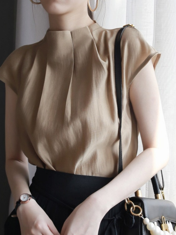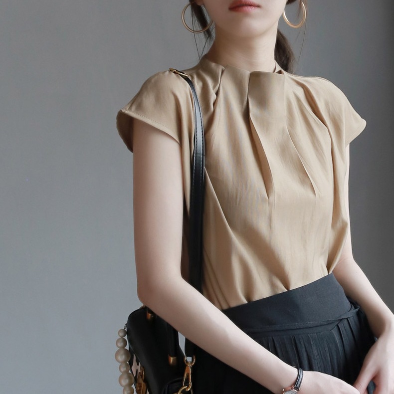 3 차원 주름진 하이 엔드 셔츠 여성의 2025 여름 새로운 우아한 통근 패션 세련된 셔츠 슬림 룩 탑
