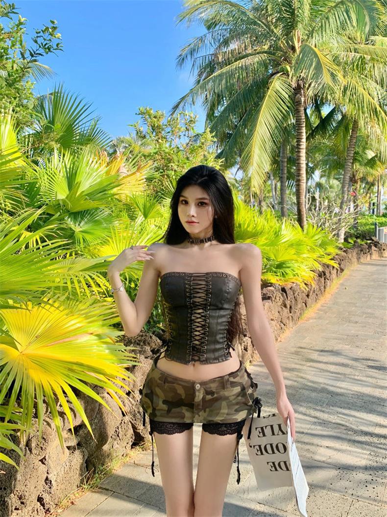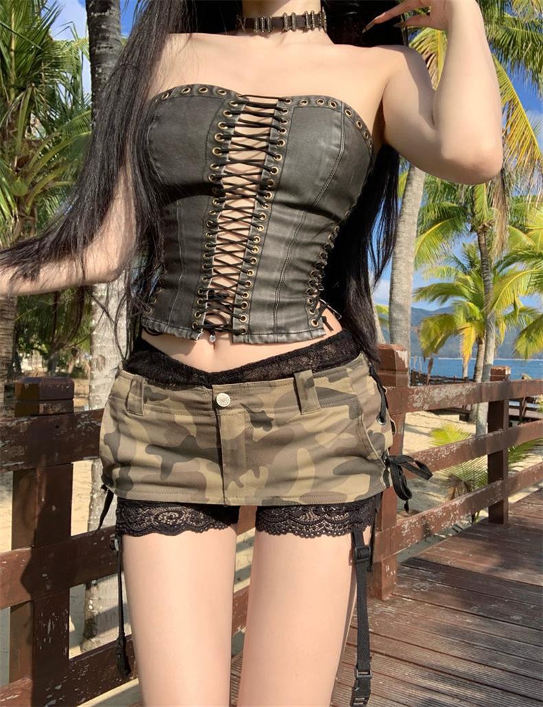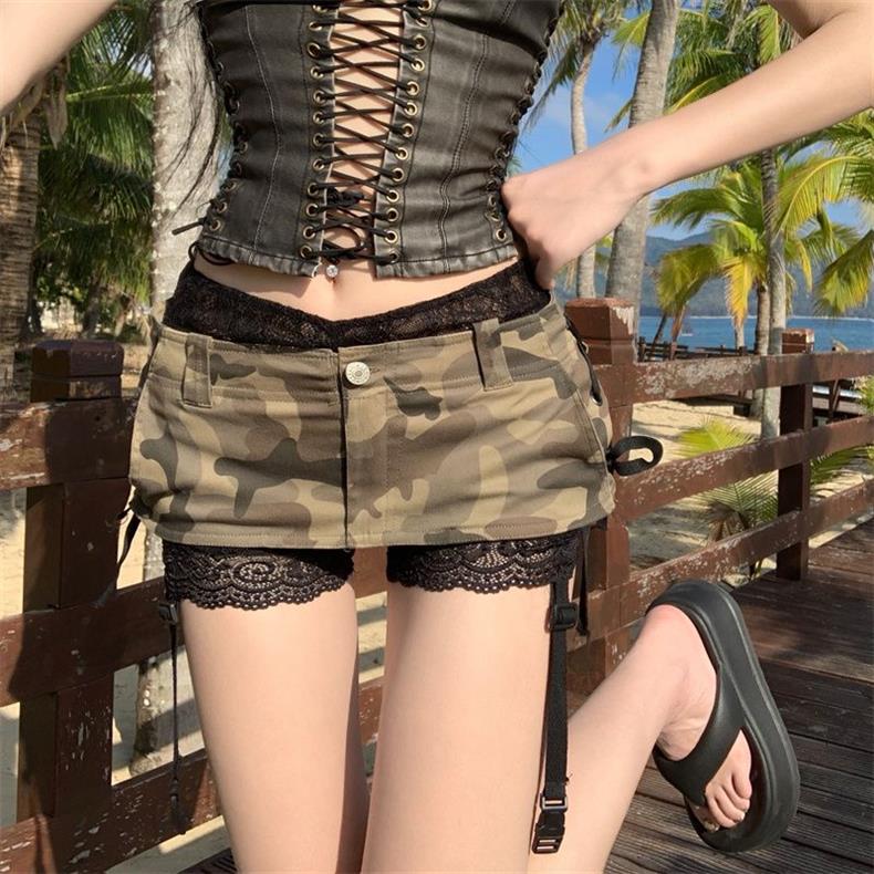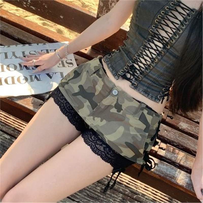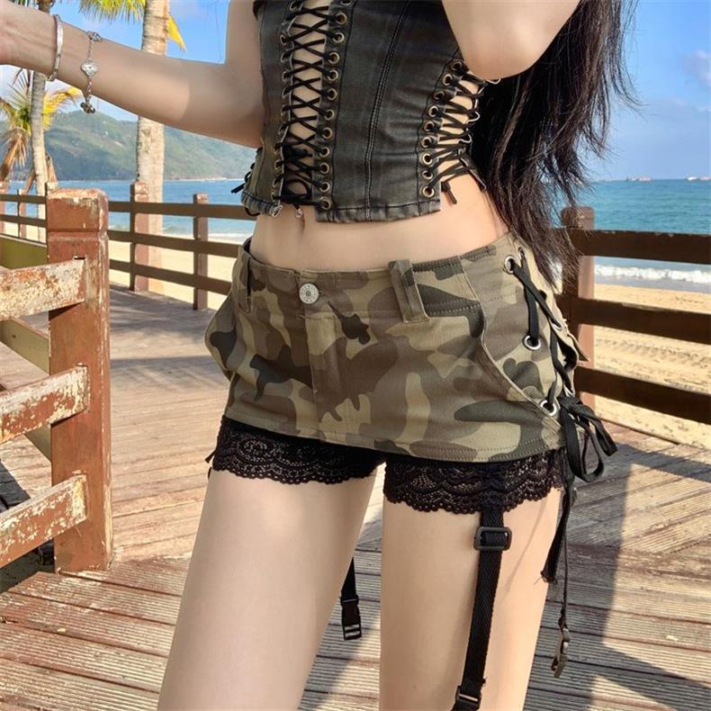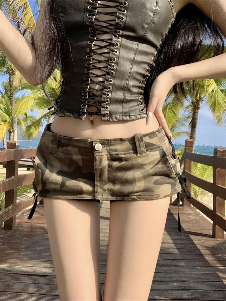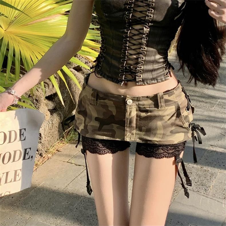 초단거리 노출 방지 핫걸 헤비듀티 A라인 짧은 스커트 팬츠 디자인 카무플라주 데님 미니스커트 밀레니얼 핫걸 힙 커버